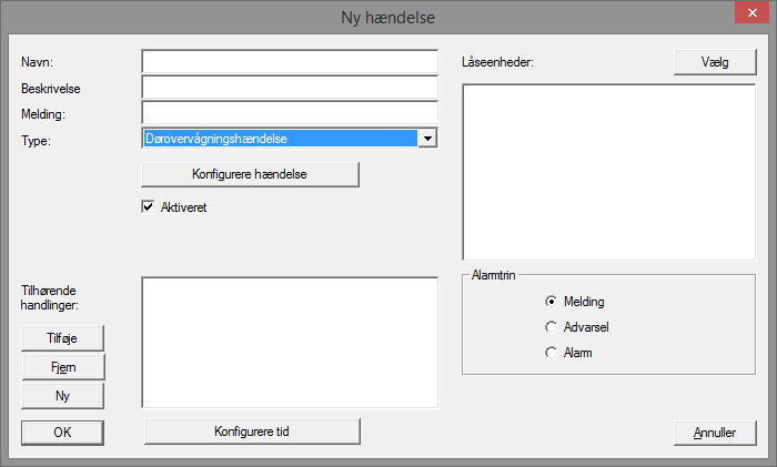 - Hændelsen er konfigureret helt