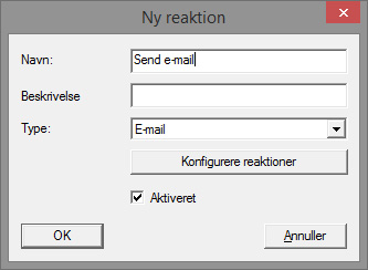 - Protokolfil: Hændelsen skrives i en logfil for senere analyse - Indstil en reaktion via [Konfigurer reaktion]