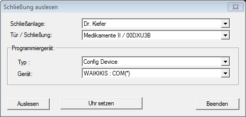 - Config Device: Wenn die Schließung mit einen Programmiergerät ausgelesen werden soll