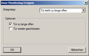 - Tür steht zu lange offen | Optionen: " Tür zu lange offen" / "Tür wieder geschlossen"