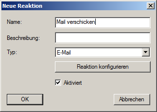 - Protokolldatei: Das Ereignis wird zur späteren Analyse in eine Logdatei geschrieben - Richten Sie die Reaktion ein über [Reaktion Konfigurieren]