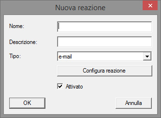 - Selezionare il tipo di reazione e assegnarvi un nome