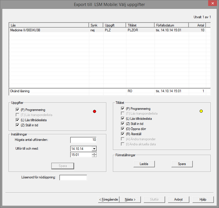 - Door Monitoring-cylinderns konfigurationsdata exporteras på samma sätt som vid LSM Mobile.