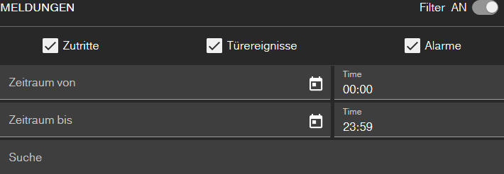 Sie können die angezeigten Ereignisse filtern. Aktivieren Sie dazu den Filter und stellen Sie Ihn nach Bedarf ein.