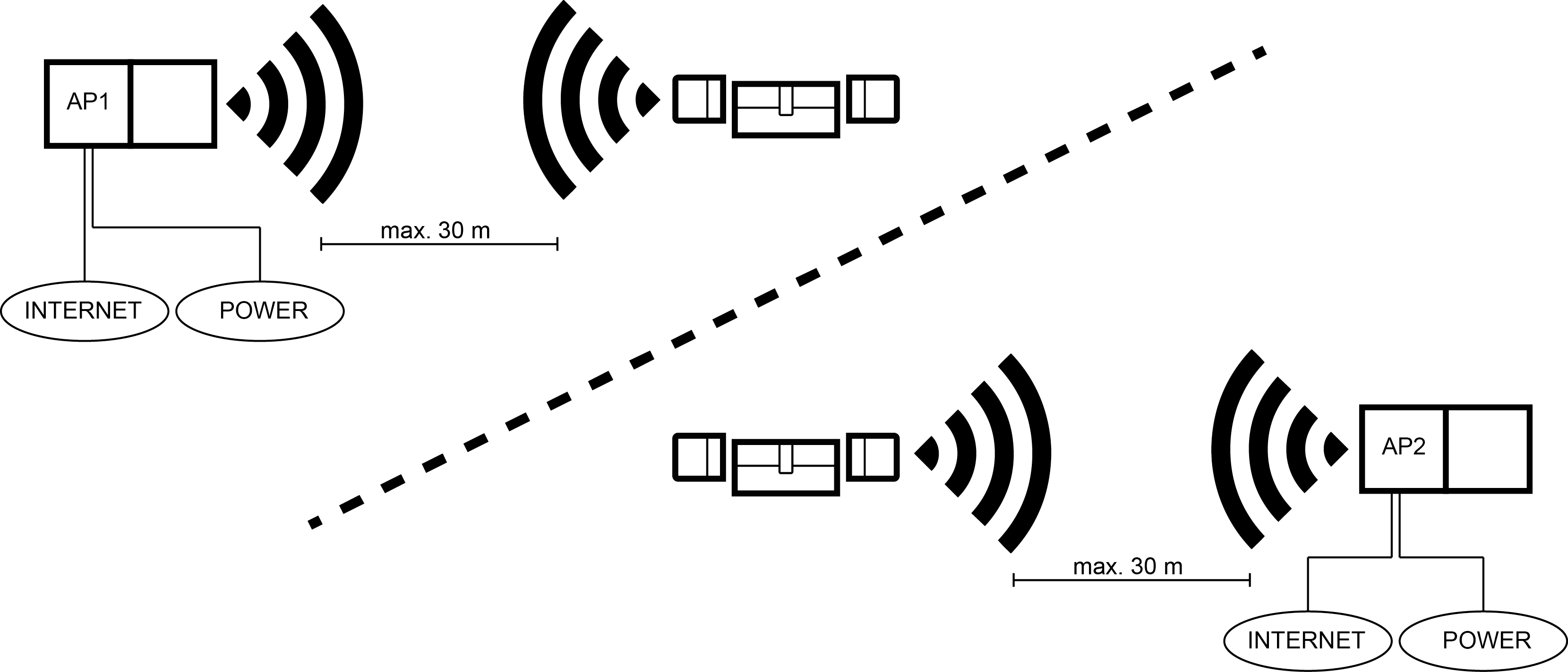 MobileKey ONLINE est en mesure de gérer plusieurs points d’accès. Le réseau MobileKey ONLINE peut ainsi couvrir plusieurs emplacements ou serrures très éloignées.