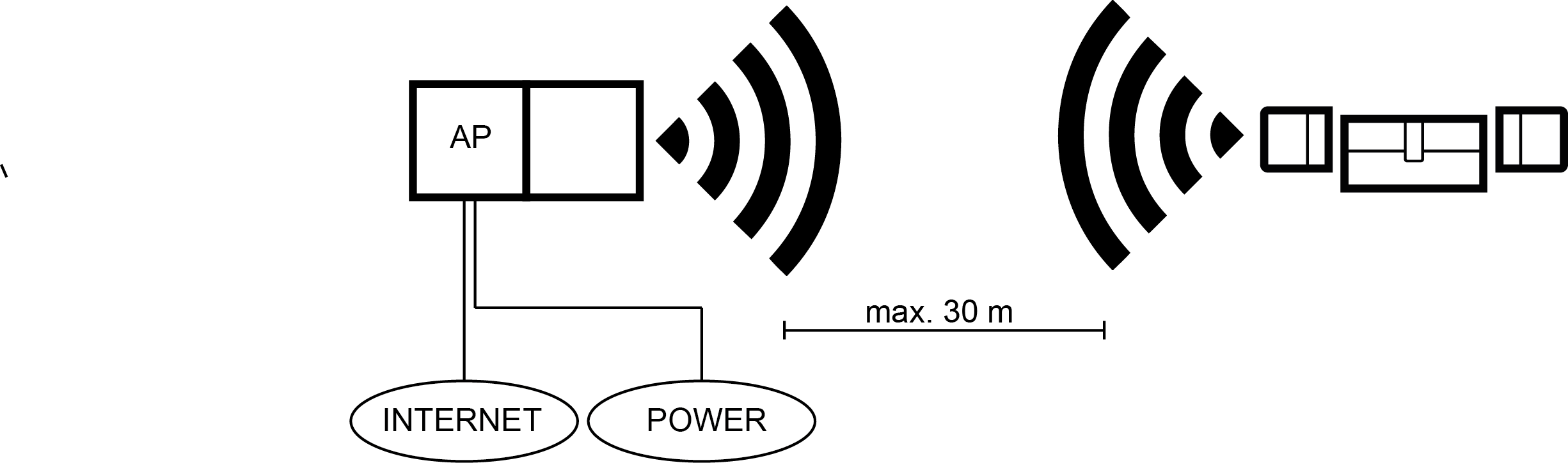 Het gebruik van een als Accesspoint geconfigureerde SmartBridge is de eenvoudigste toepassing voor MobileKey ONLINE.