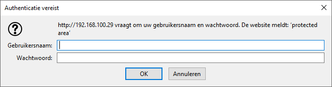 - Het venster Authentication required gaat open.