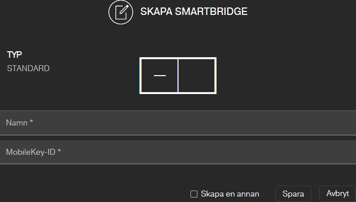 - Ange MobileKey-ID (se förpackning eller SmartBridge-baksidan, format XXXX-XXXX-XXXX-XXXX).