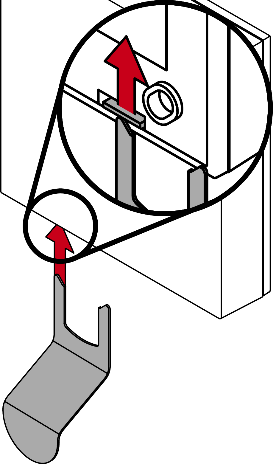 - Premere verso l’alto il secondo nasello di scatto mediante lo strumento SmartHandle.