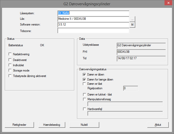 - Config Device: Hvis lukningen skal udlæses med et programmeringsværktøj
