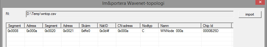 - Fönstret för import av topologin öppnas.