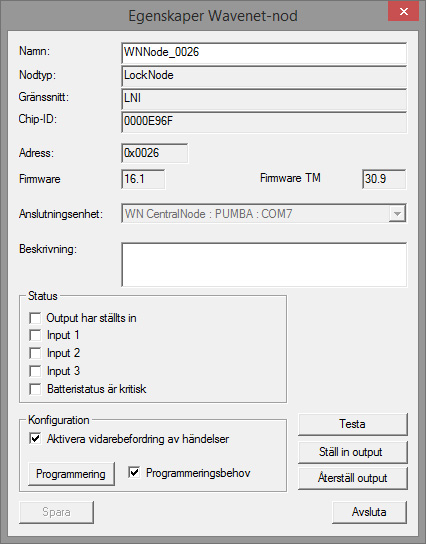 - Om Locknode ska bytas ut ska du ange det nya chip-ID:et.