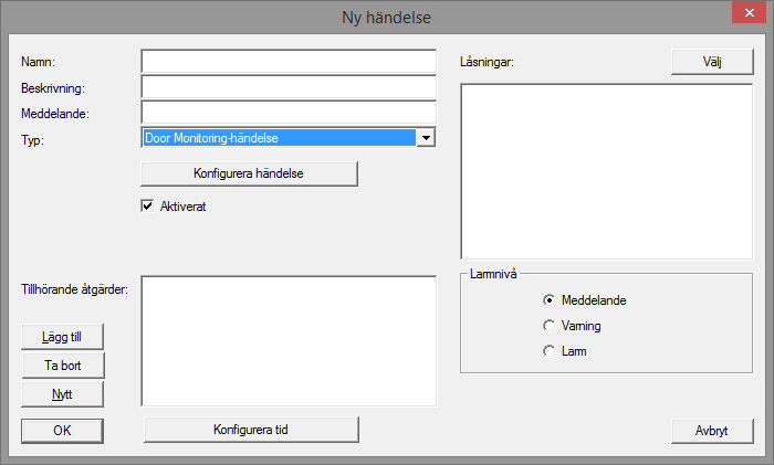 - Välj ”Door Monitoring-händelse” som typ och tilldela ett namn åt händelsen.