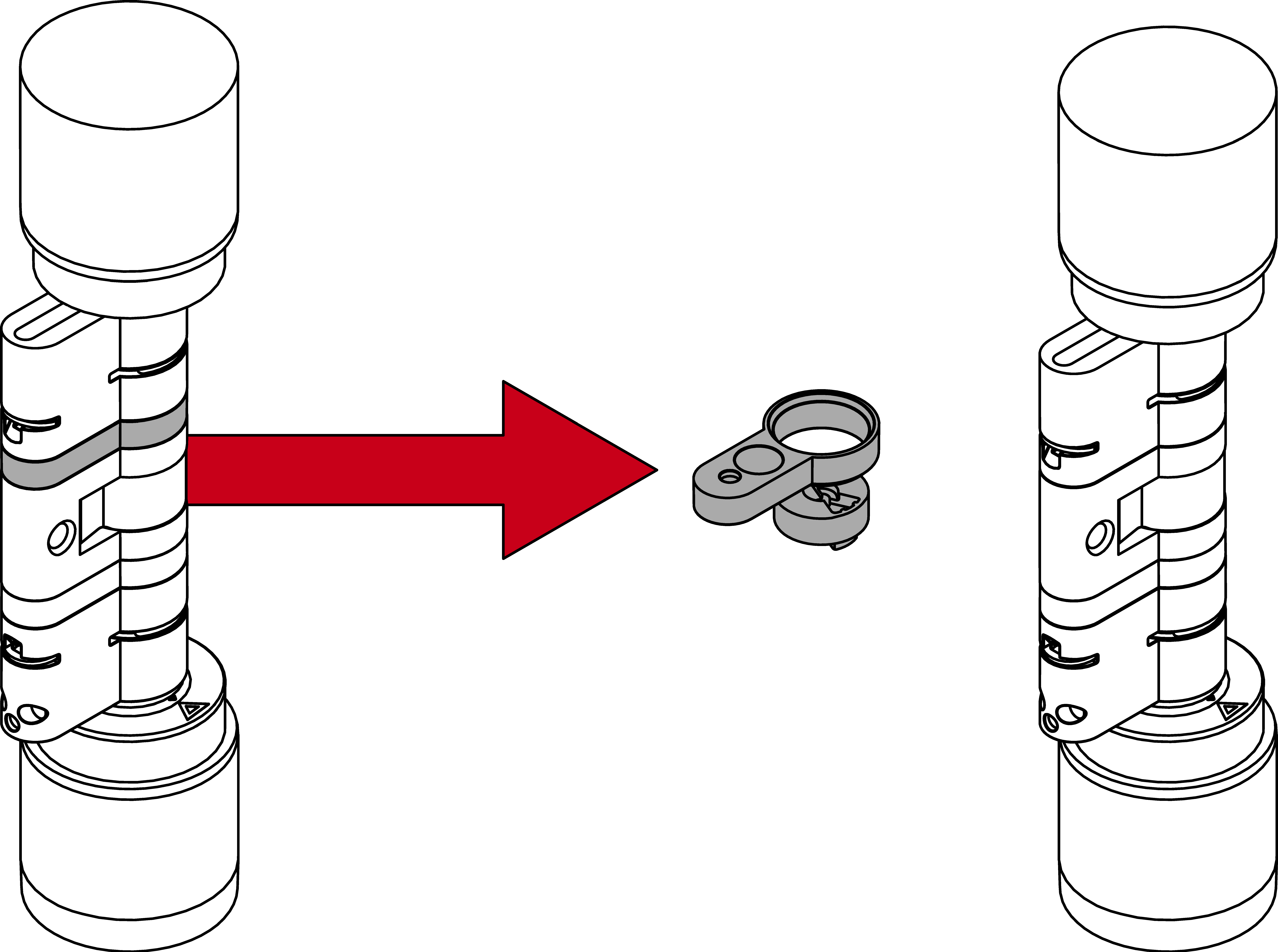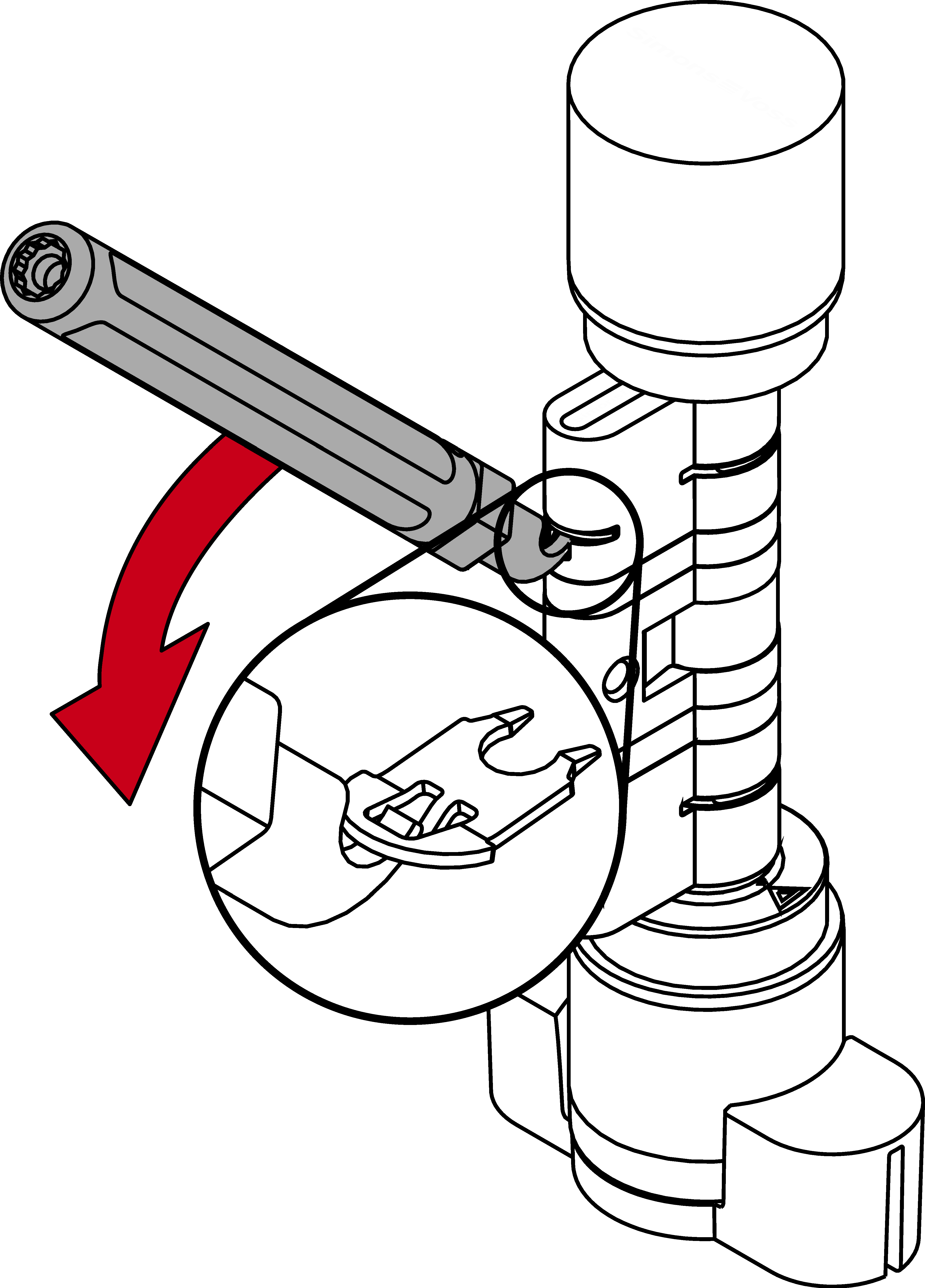 - Lever the clamp out of the profile cylinder by moving the extractor to the centre of the cylinder.