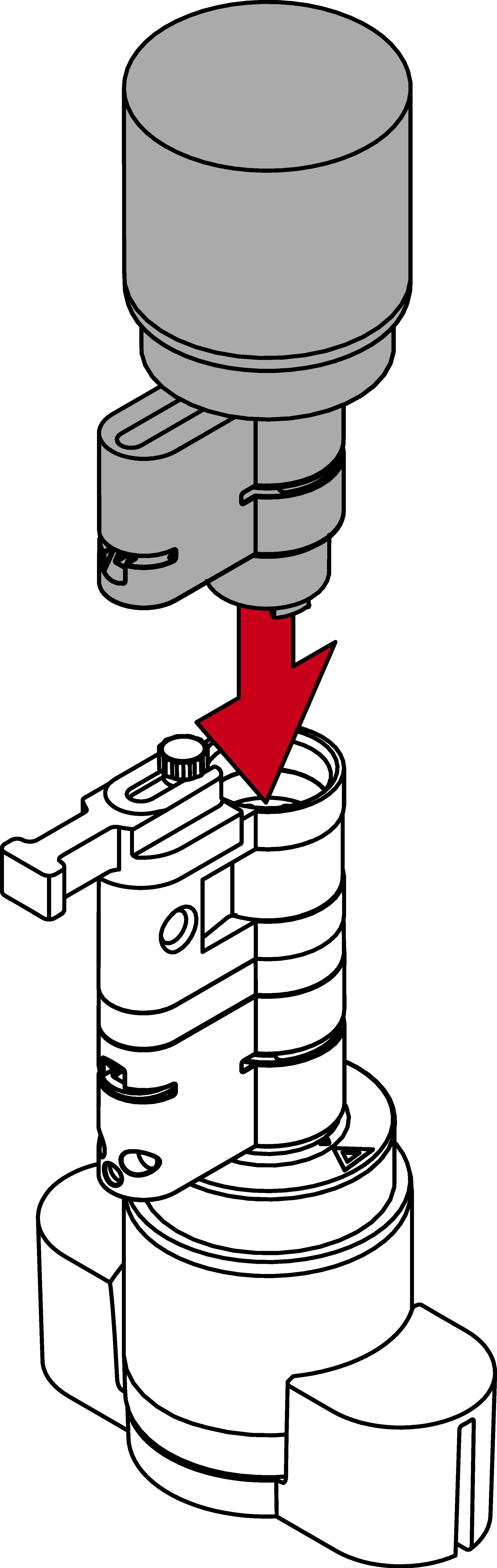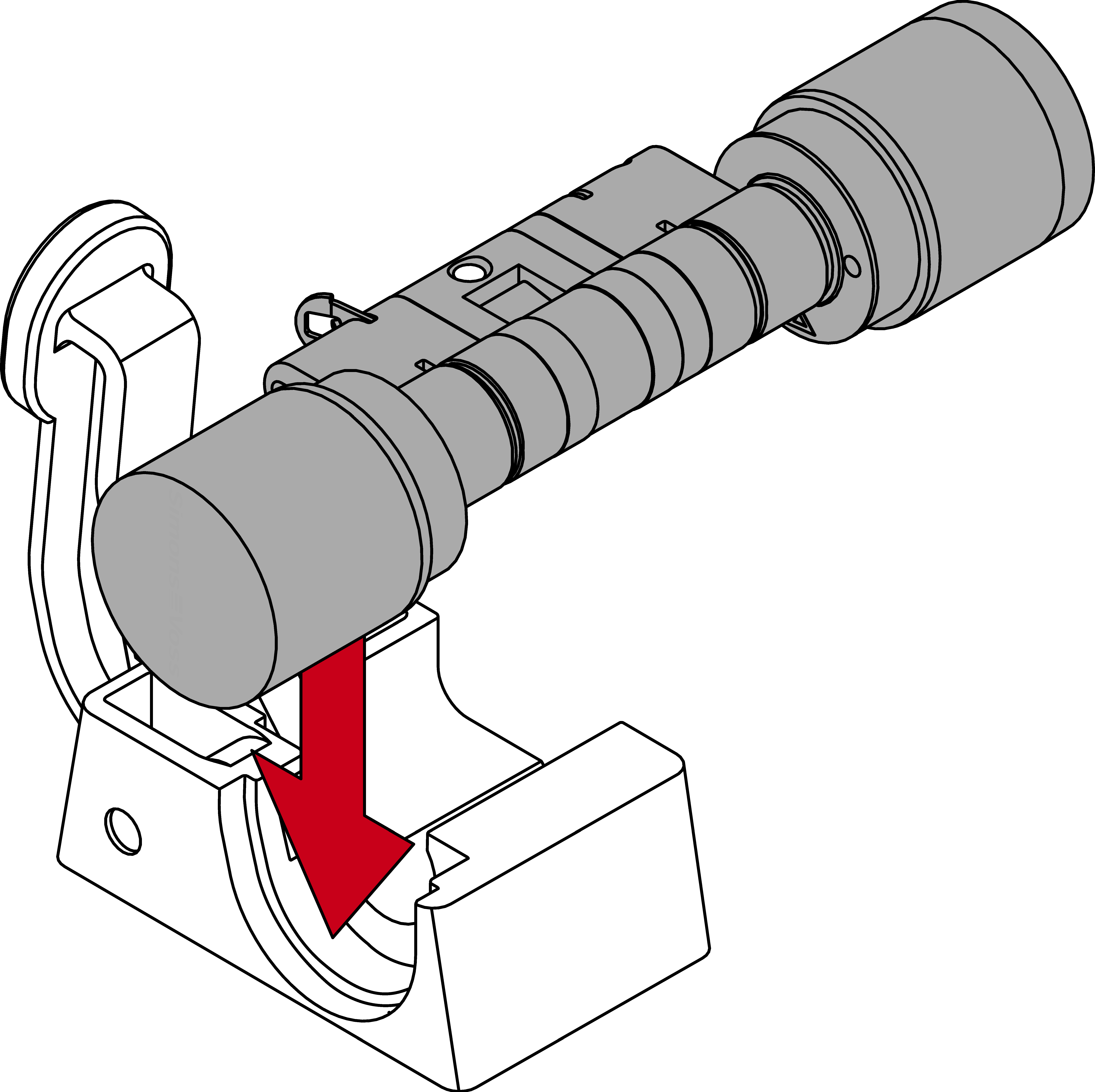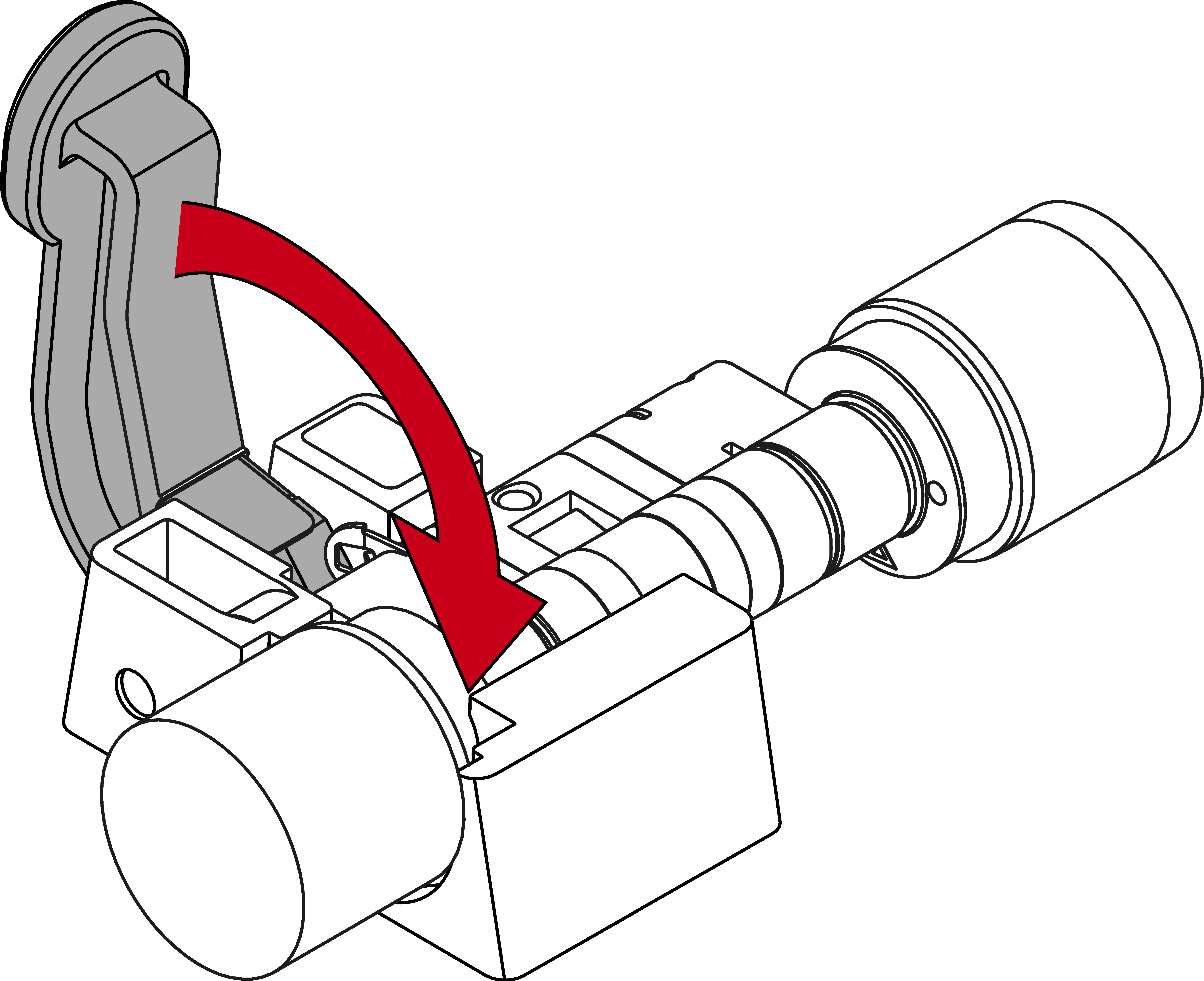 - Insert the cylinder into the clamping block so that the profile cylinder and the thumb-turn lie flush in the recesses.