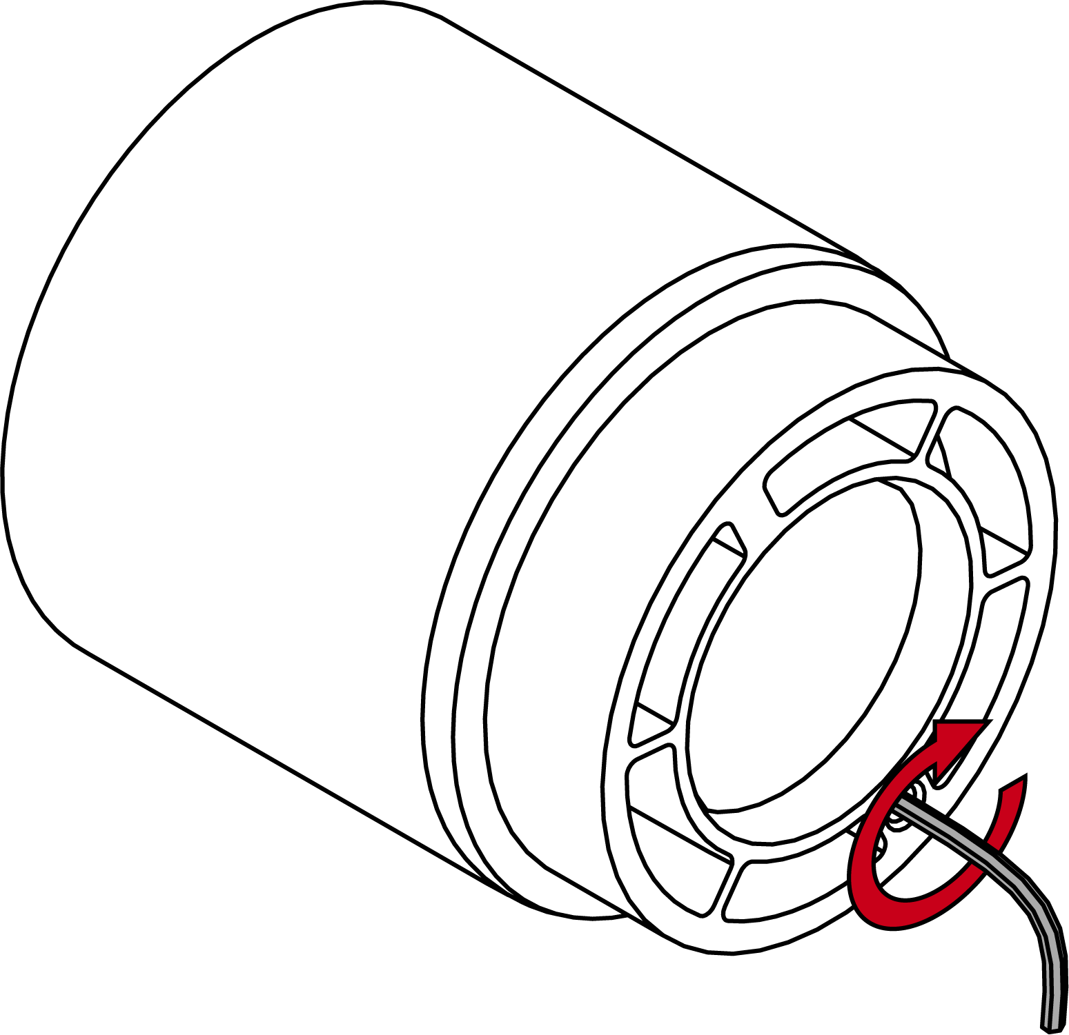 - Turn the hex key fully clockwise until it comes to a stop.