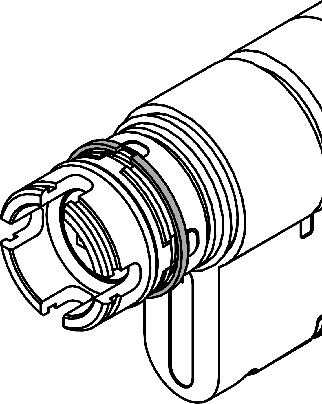 - Push the circlip with the smaller diameter in the direction of the driver onto the thumb-turn mount as far as it will go.