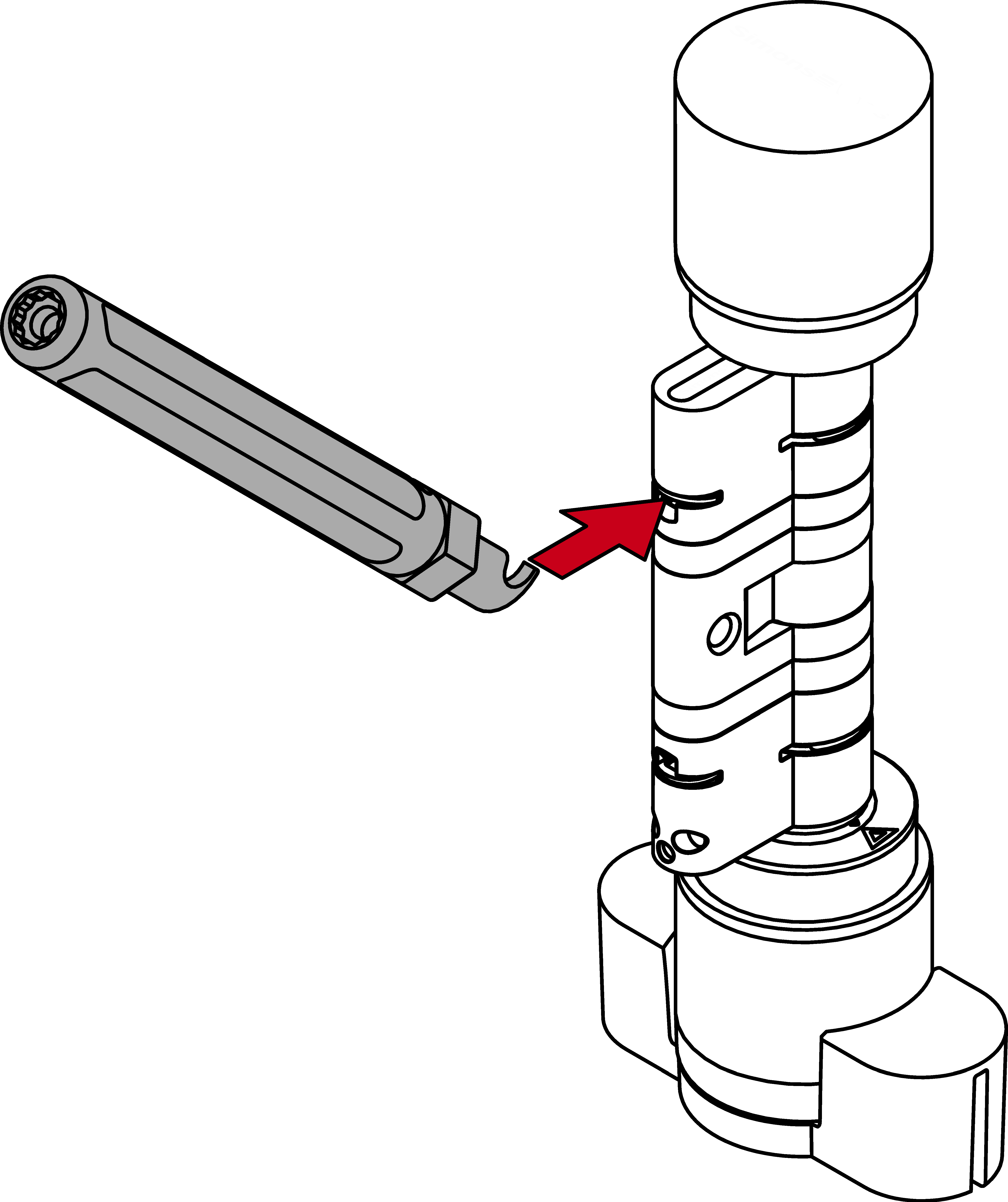- Lever the clamp out of the profile cylinder by moving the extractor to the centre of the cylinder.