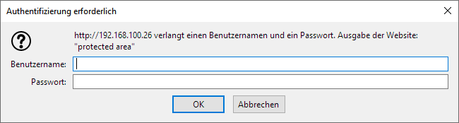 - Fenster Authentifizierung erforderlich öffnet sich.