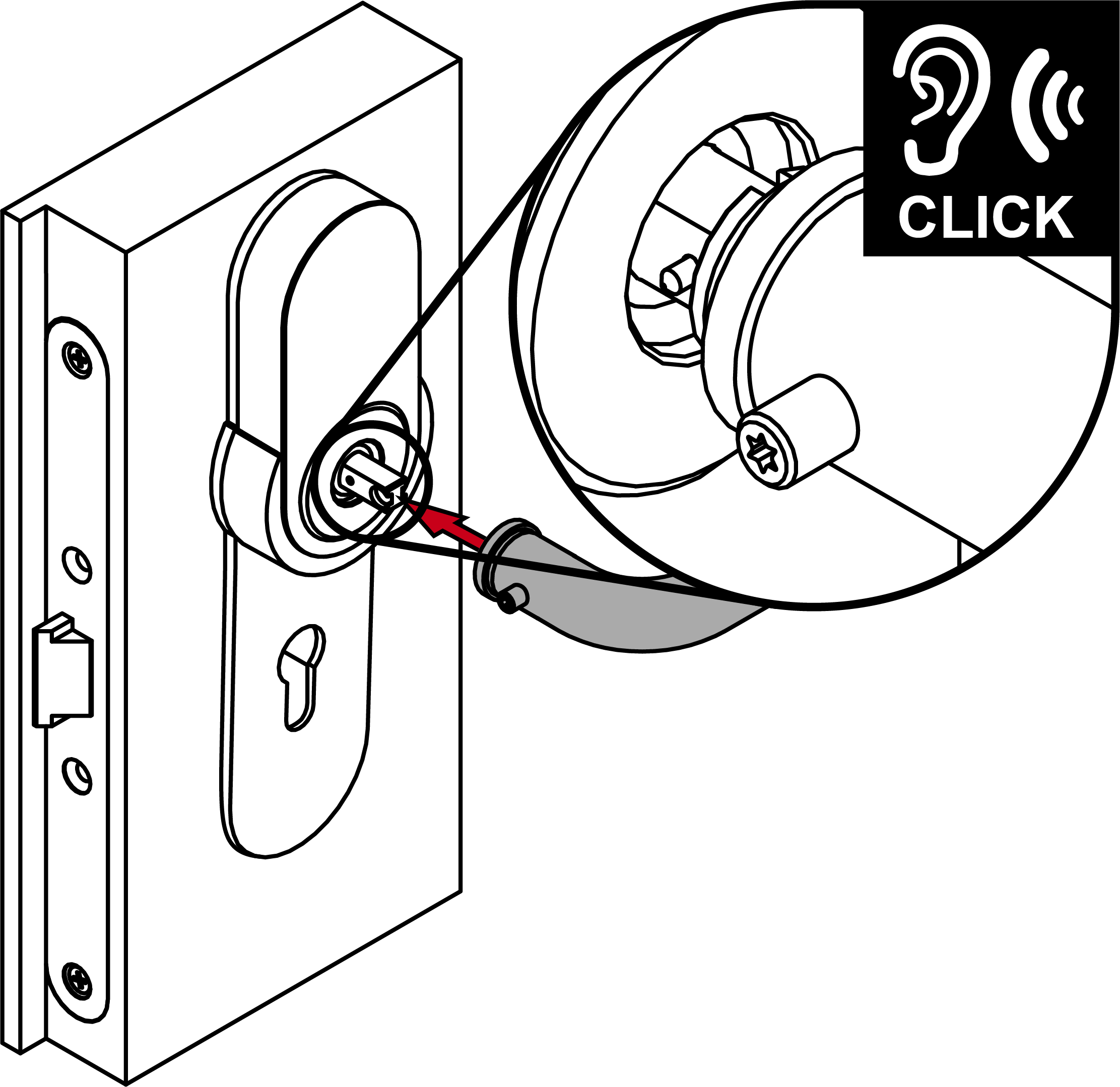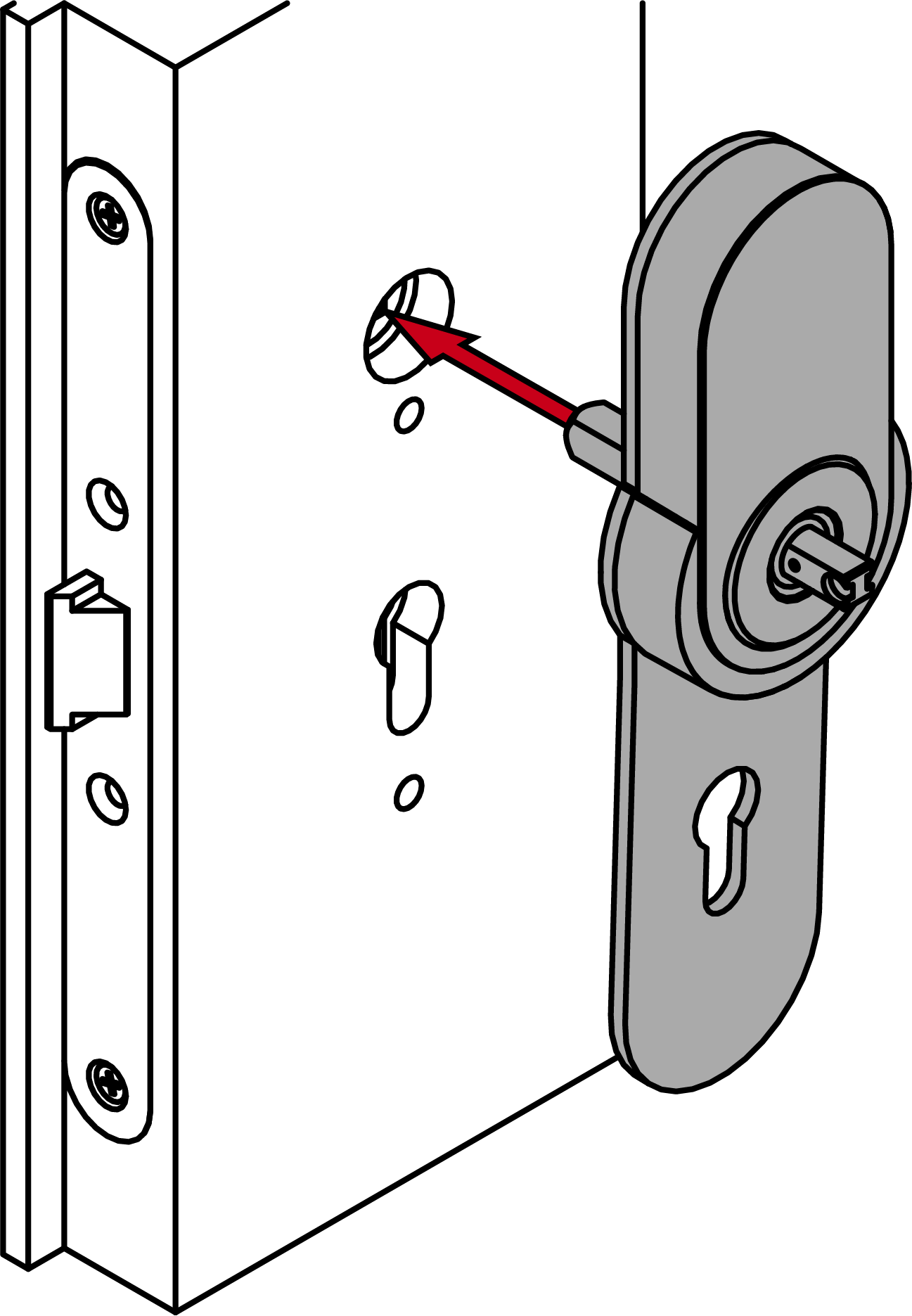 - Insert the fitting with the adapter plate and spindle into the door.