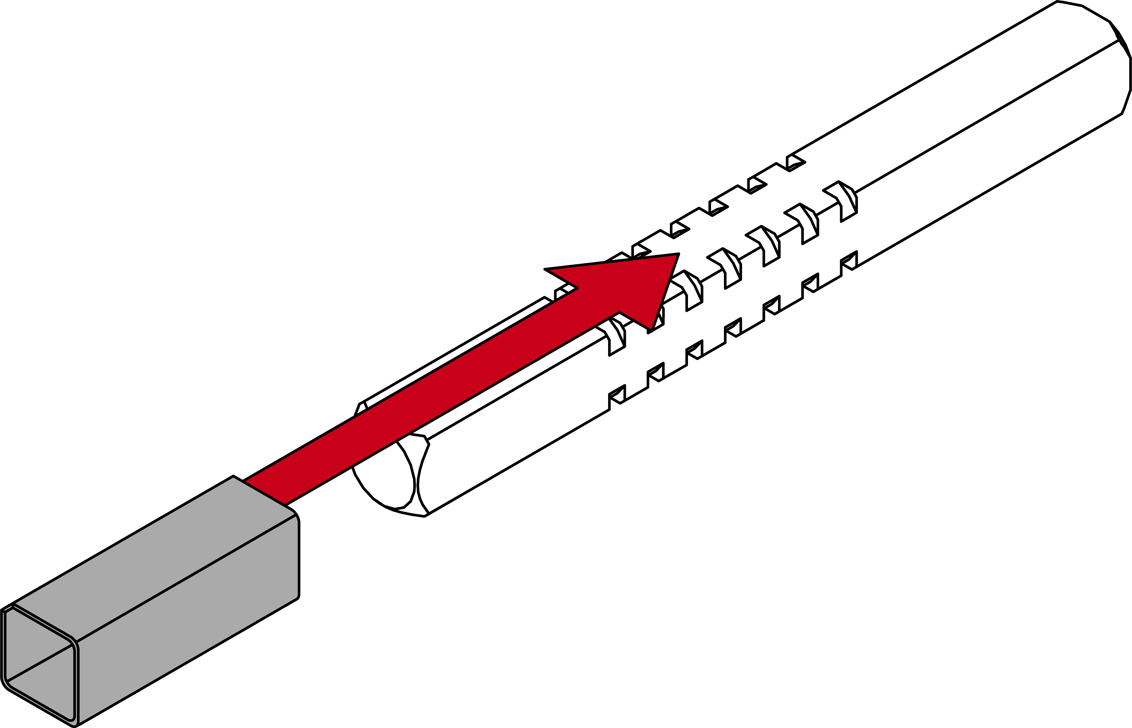- Locate the inside of the spindle (four-edge end up to the centre of the first groove = 26 mm).