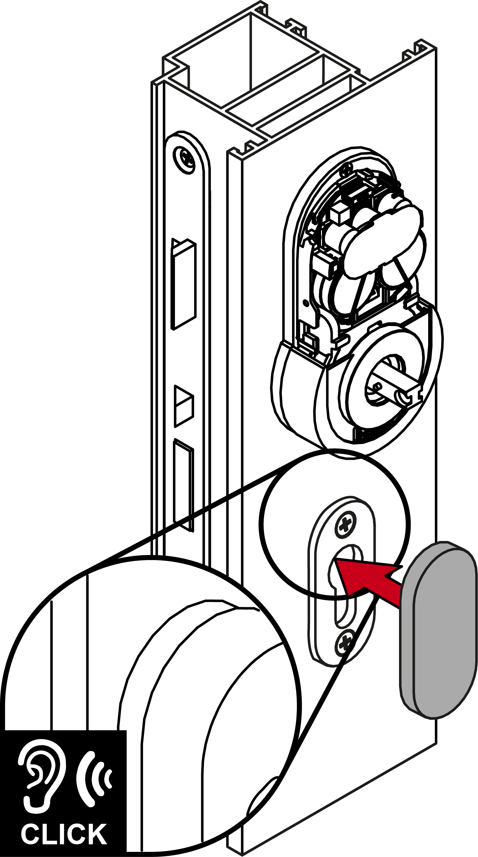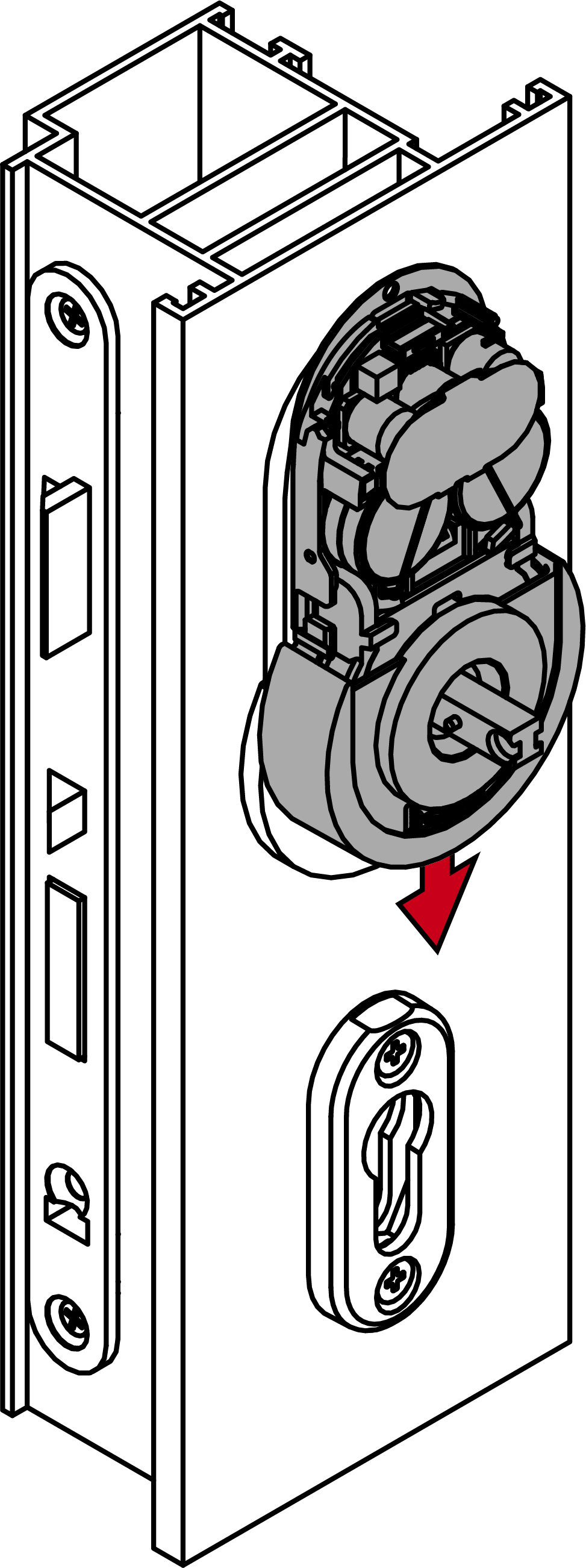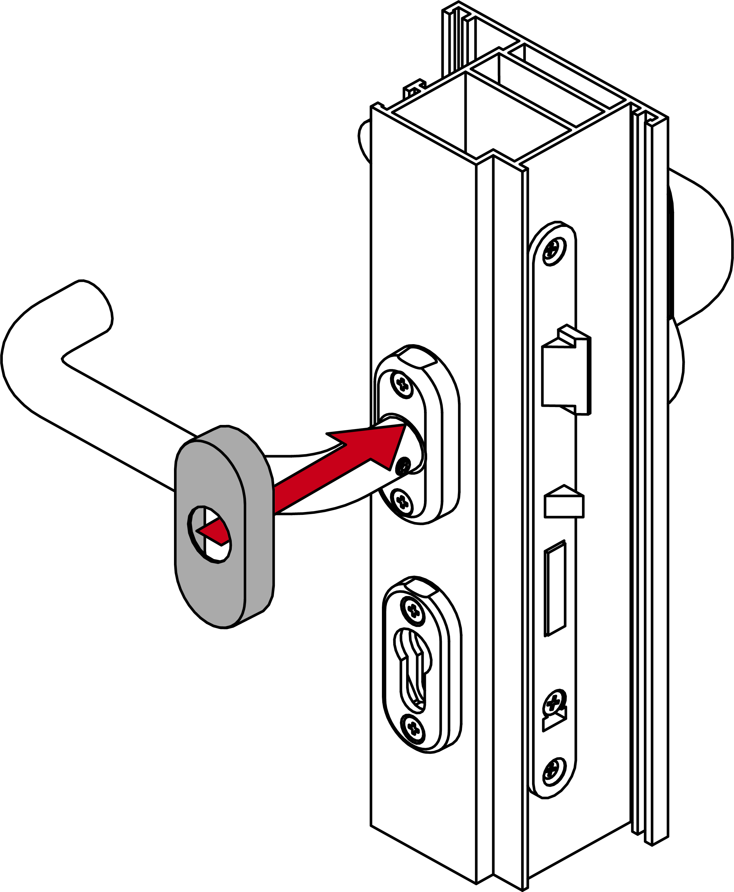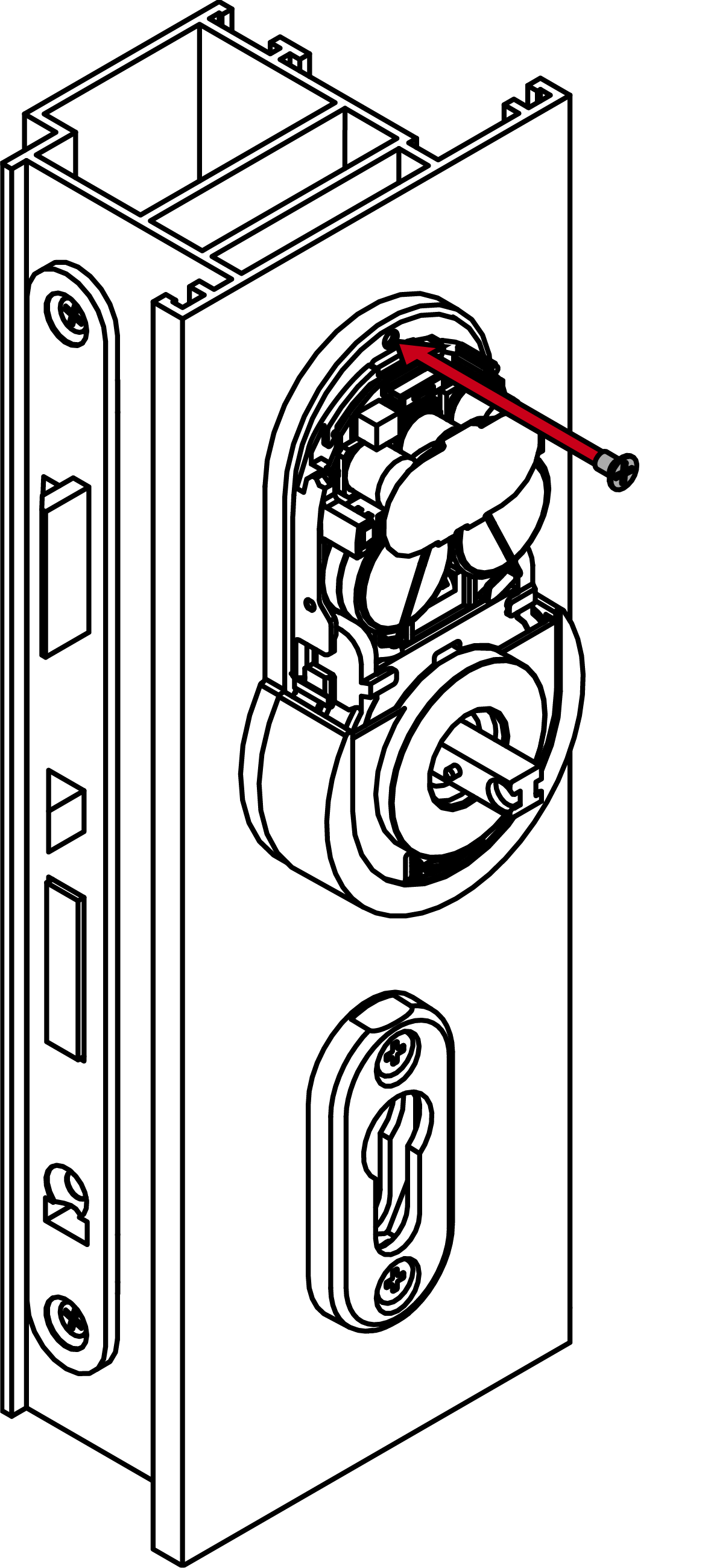 - Screw the inner handle unit onto the spindle (PH2, torque 1.1 Nm).