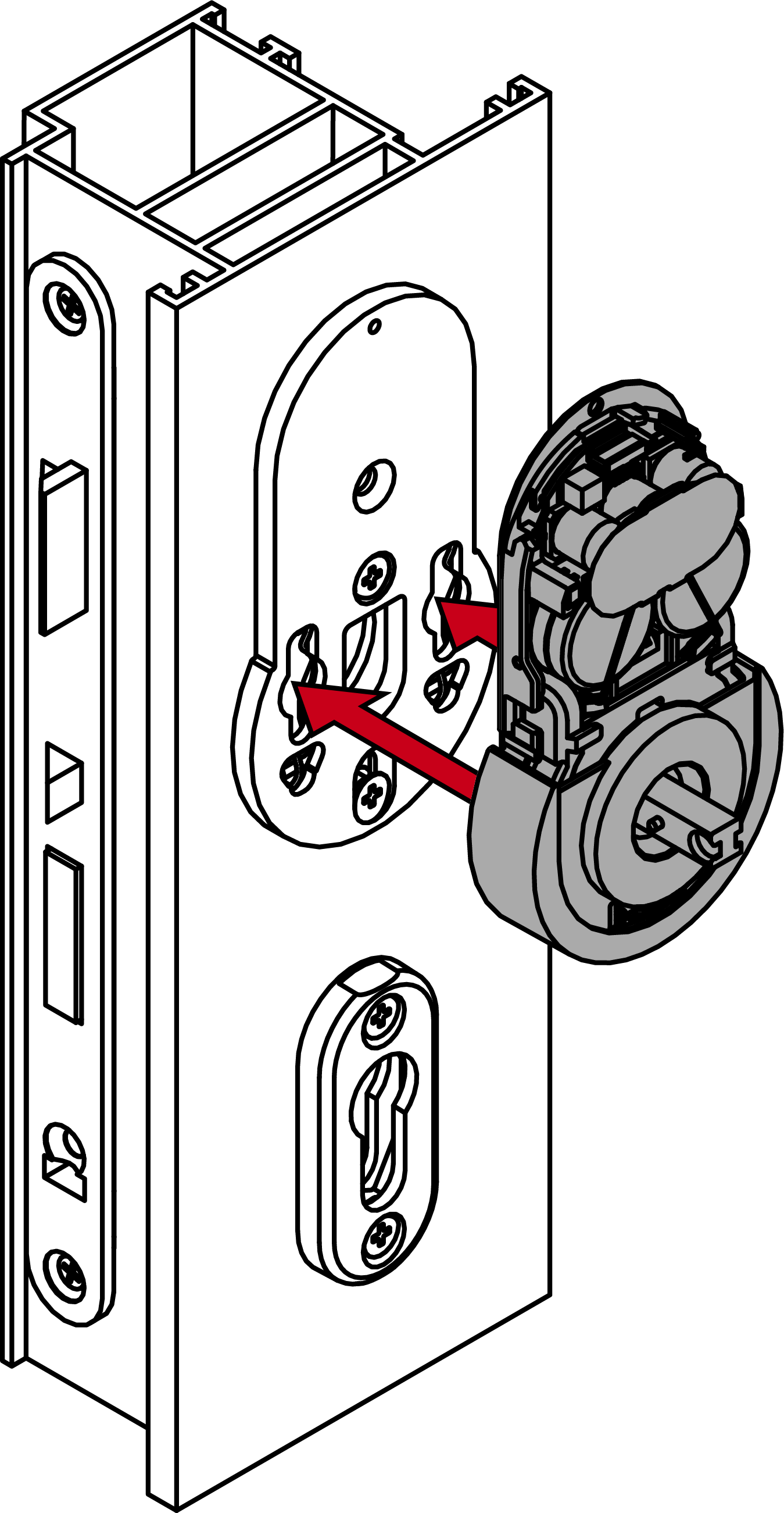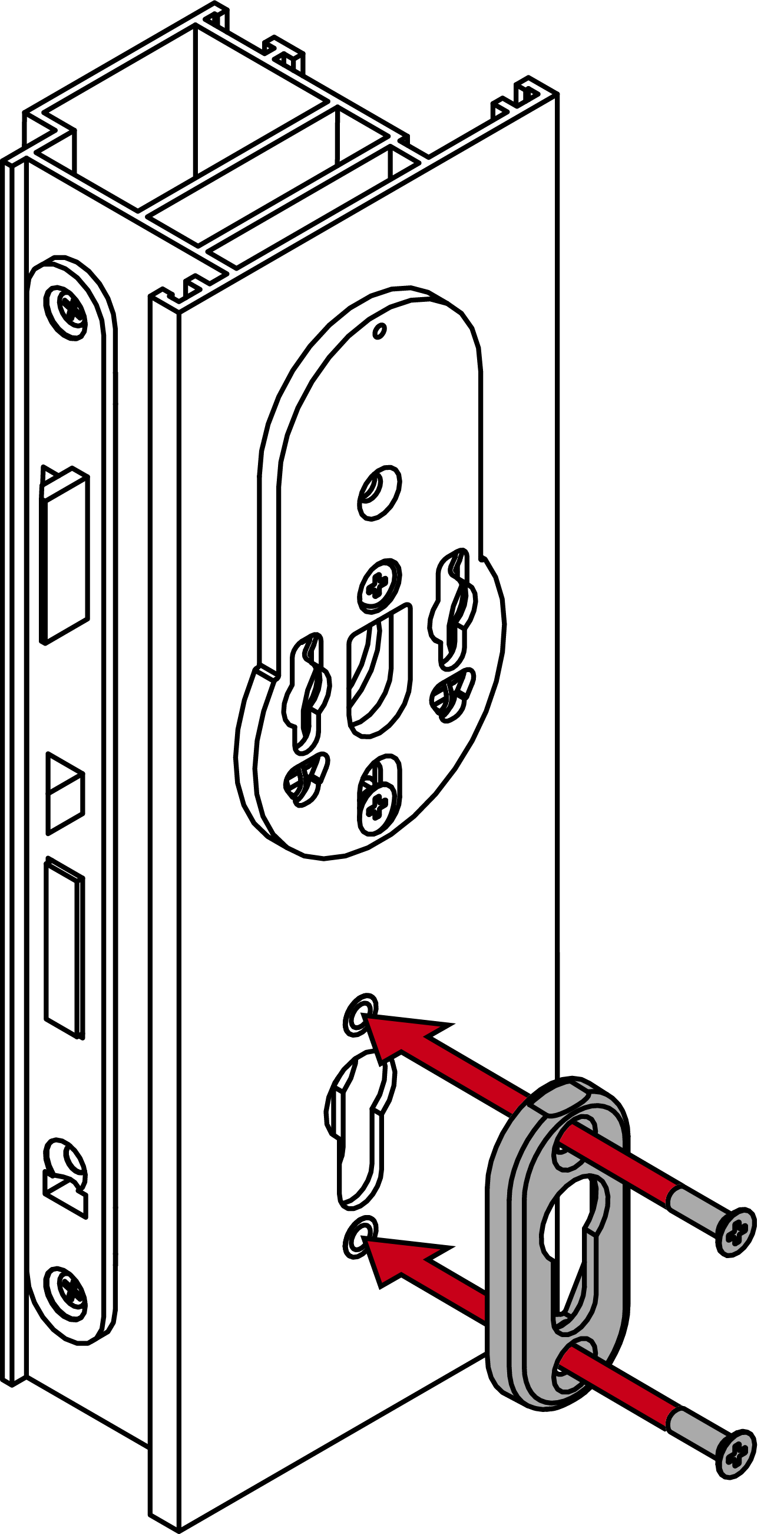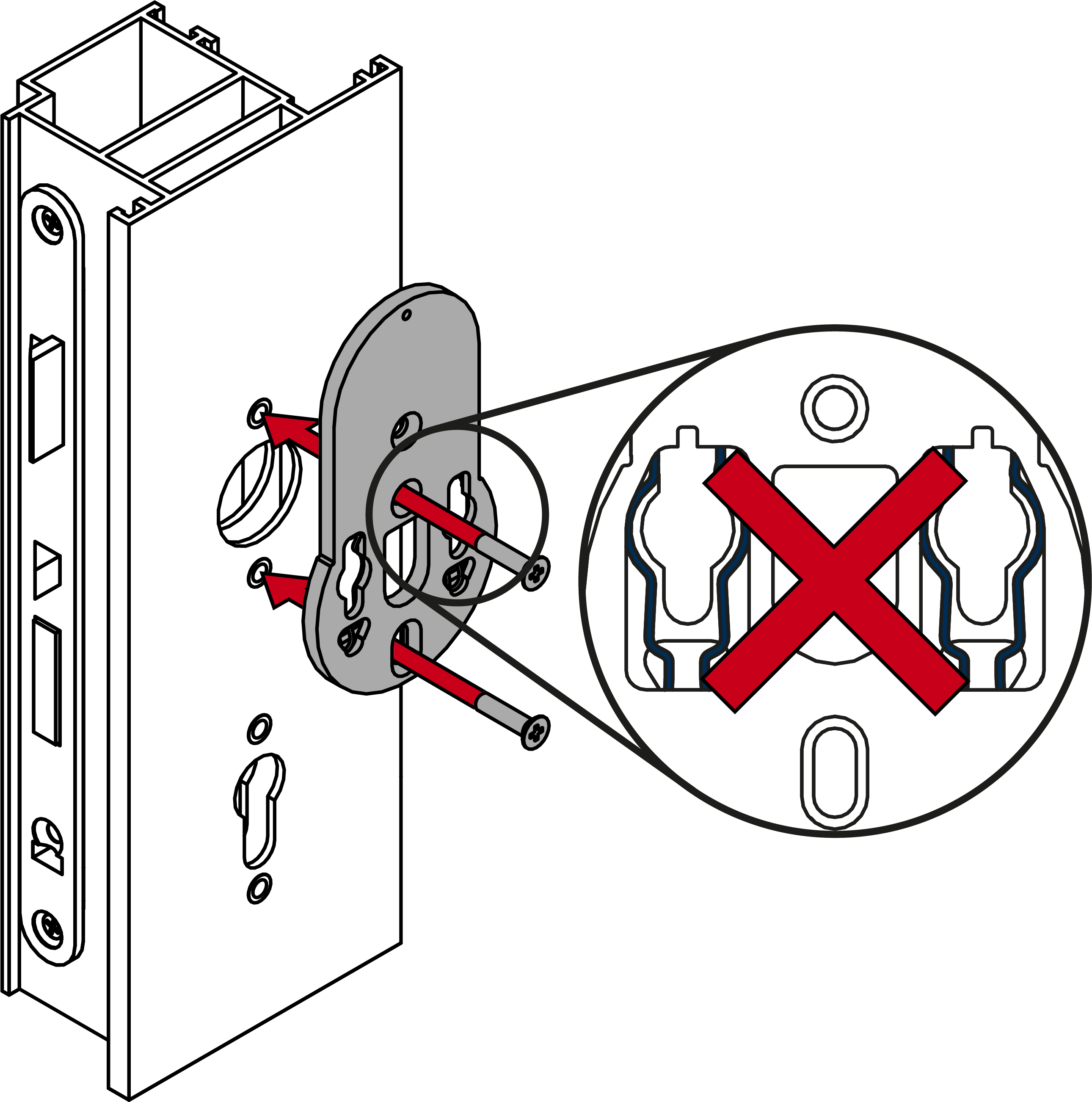 - Screw the mounting plate firmly into place on the outside so that the spring clips are facing the door (PH2, torque 1.1 Nm).