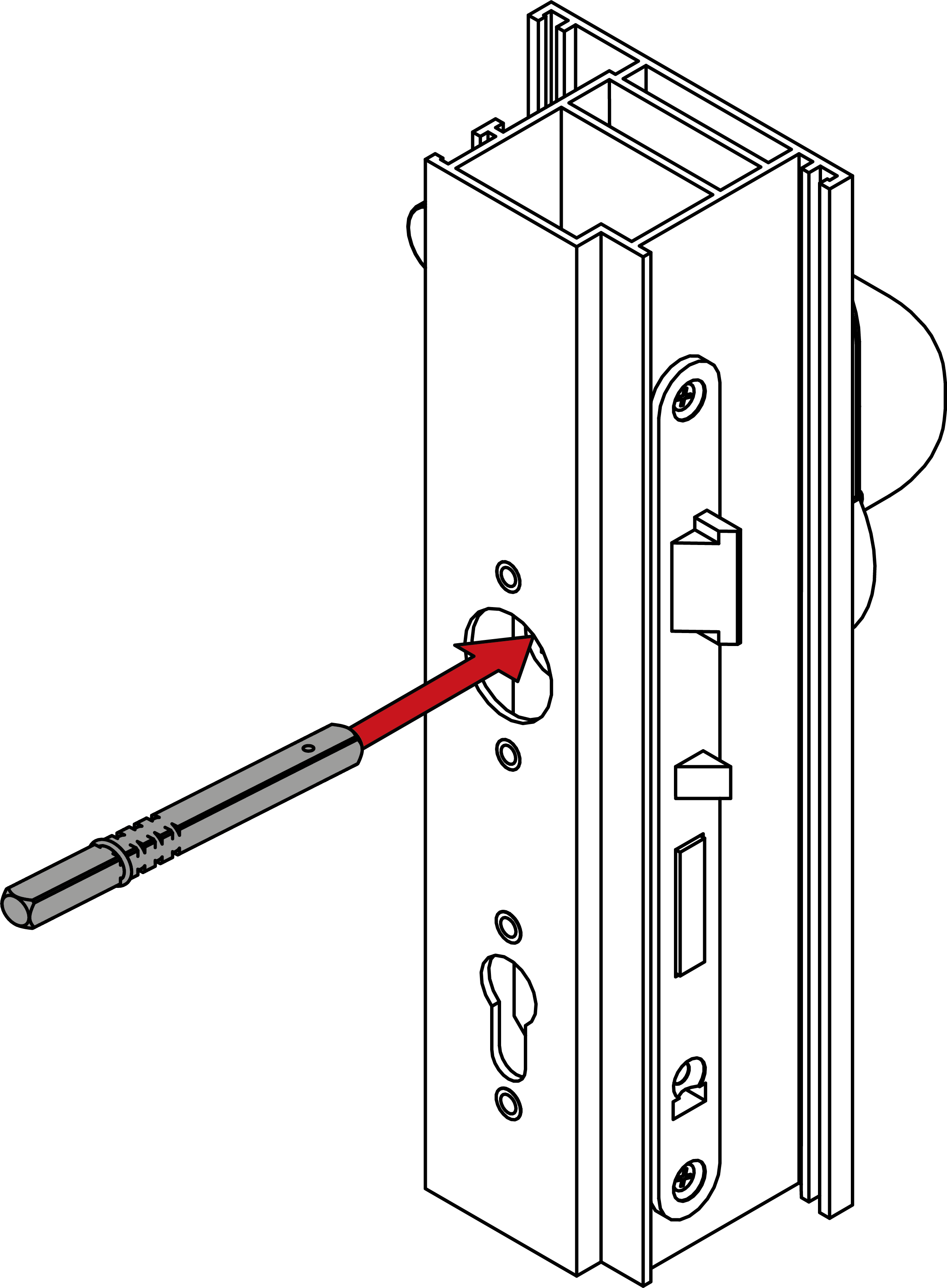 - Insert the spindle into the door with the ring-free side as far as it will go.