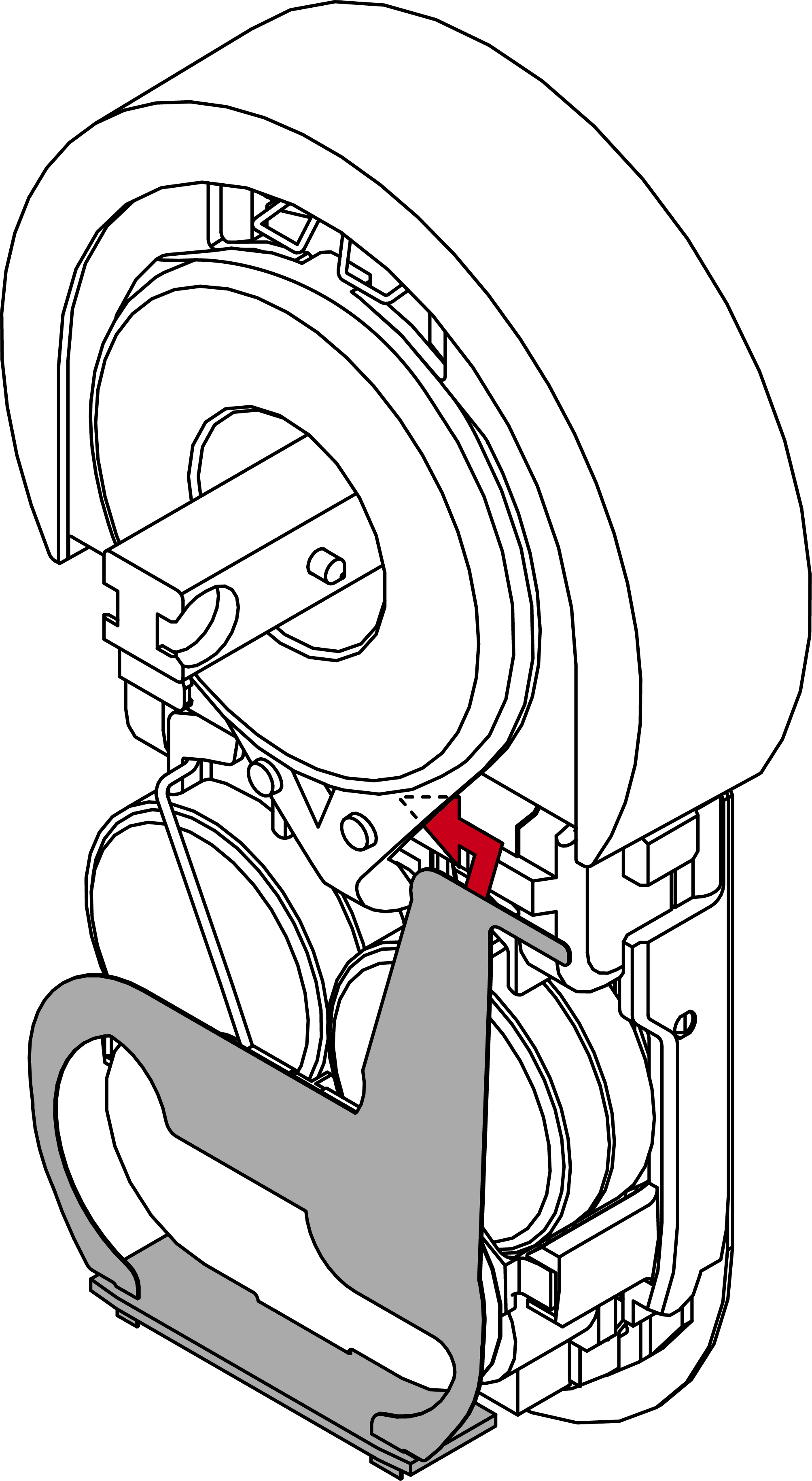 - Insert the corner of the extension piece under the transparent plastic ring.