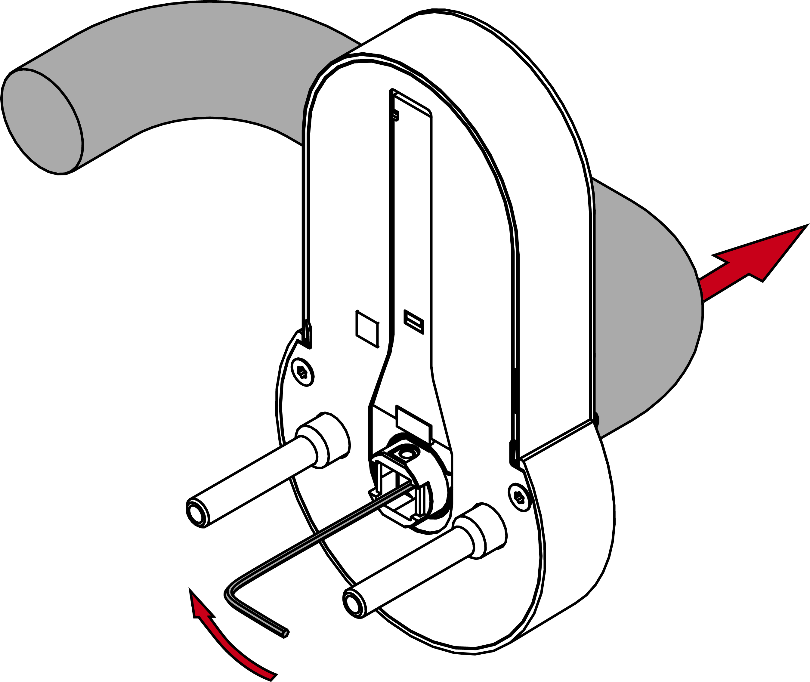 - Unscrew the headless screws of both handles.
