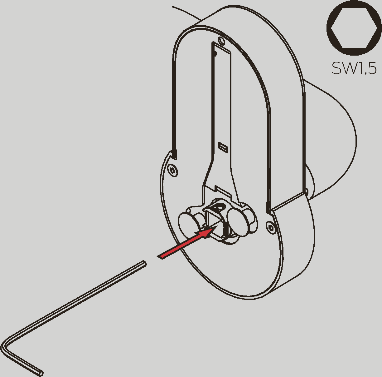 - Push the Allen wrench towards the nearer edge and hold it pressed.