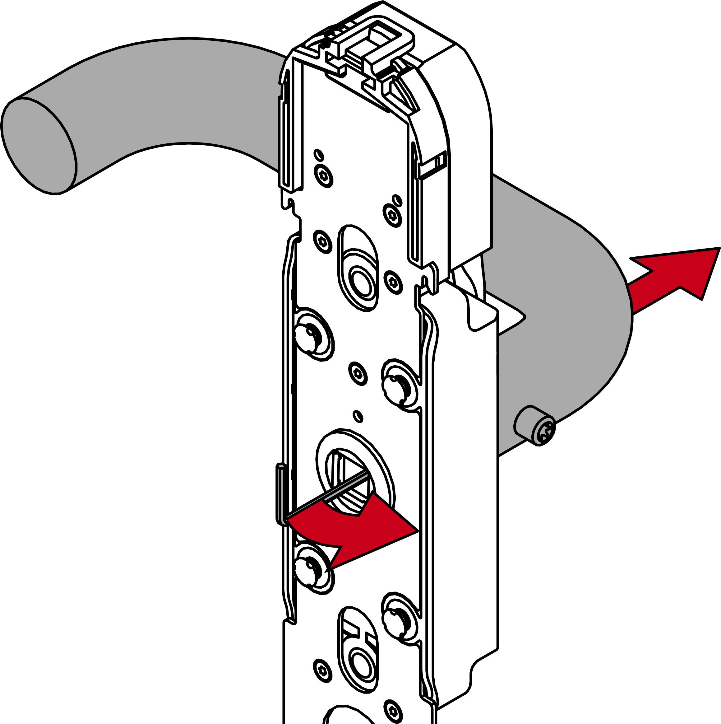 - Bend the hex key to the side where the hole is located while pulling on the outside handle.