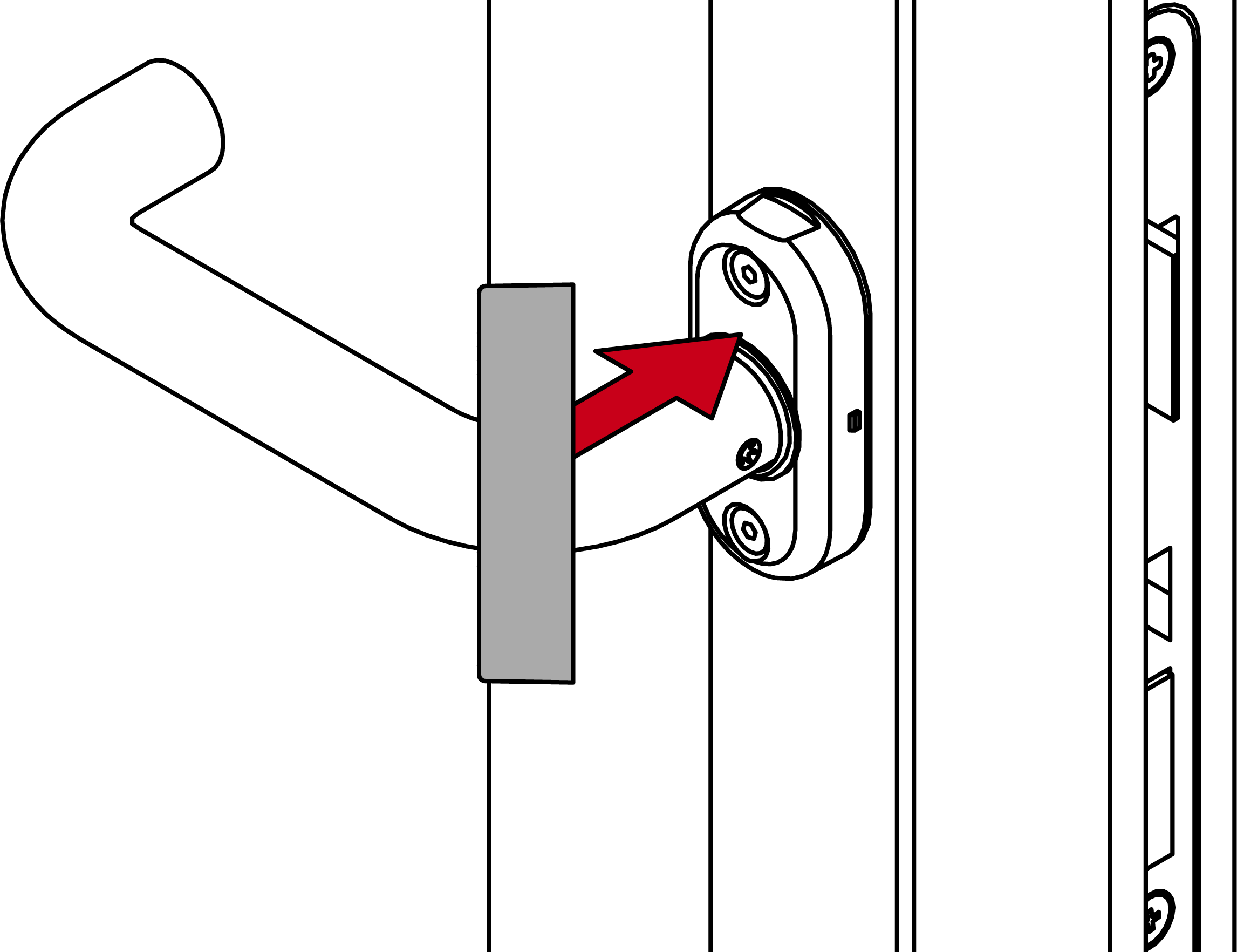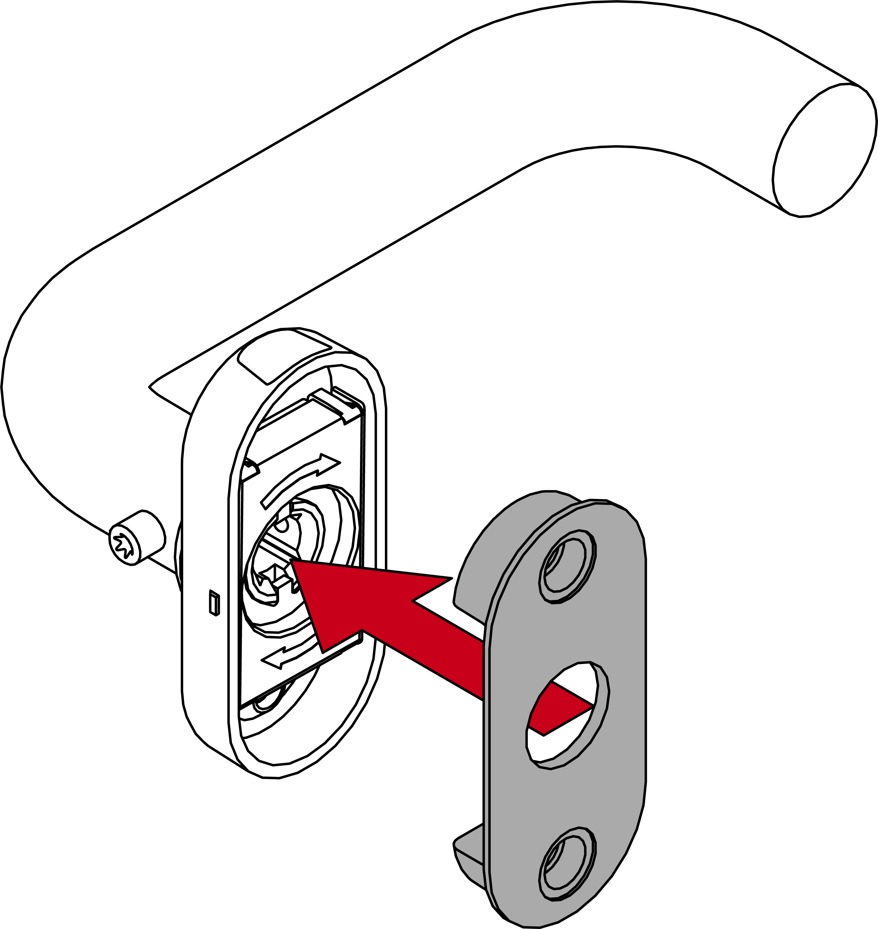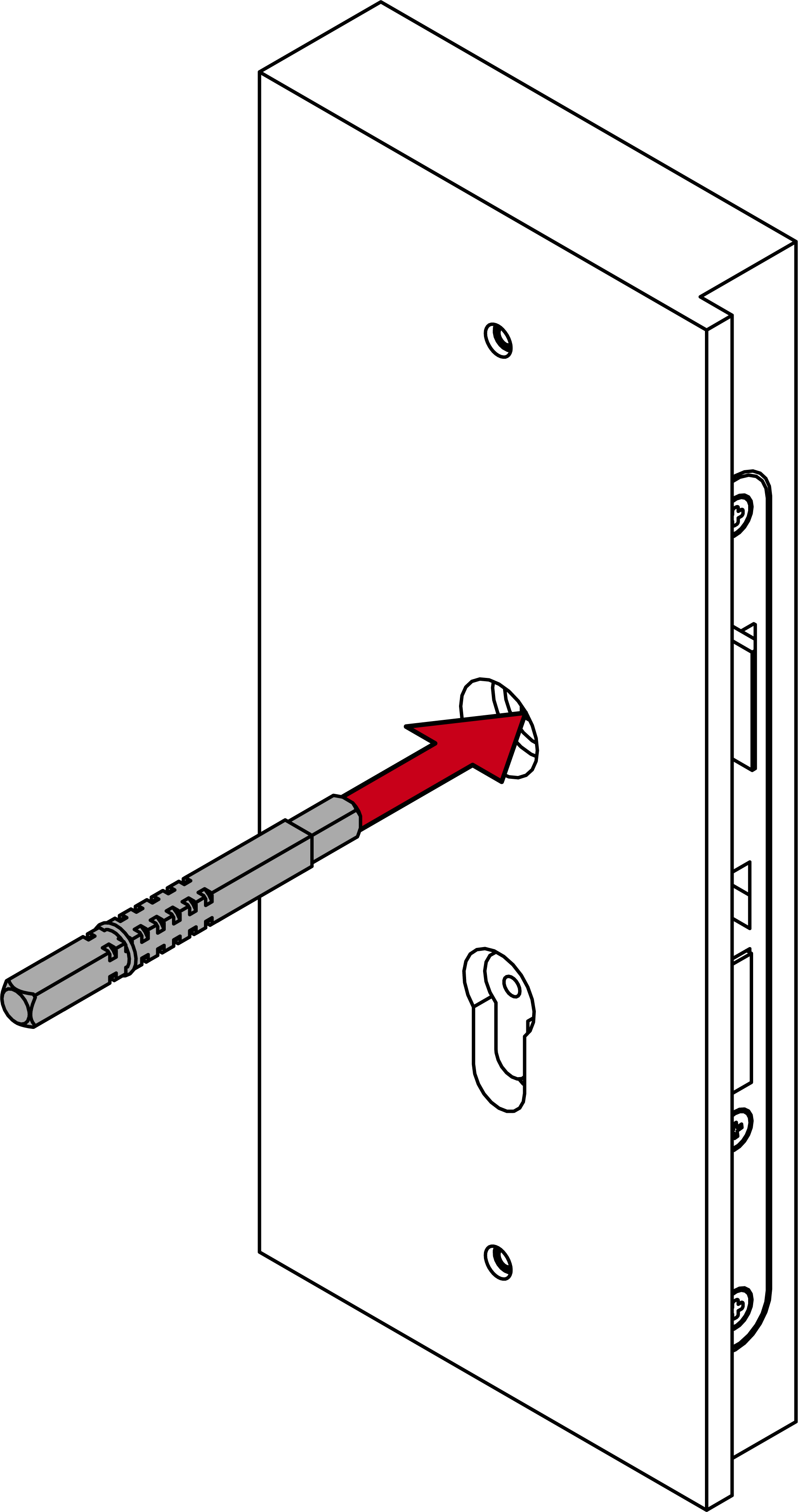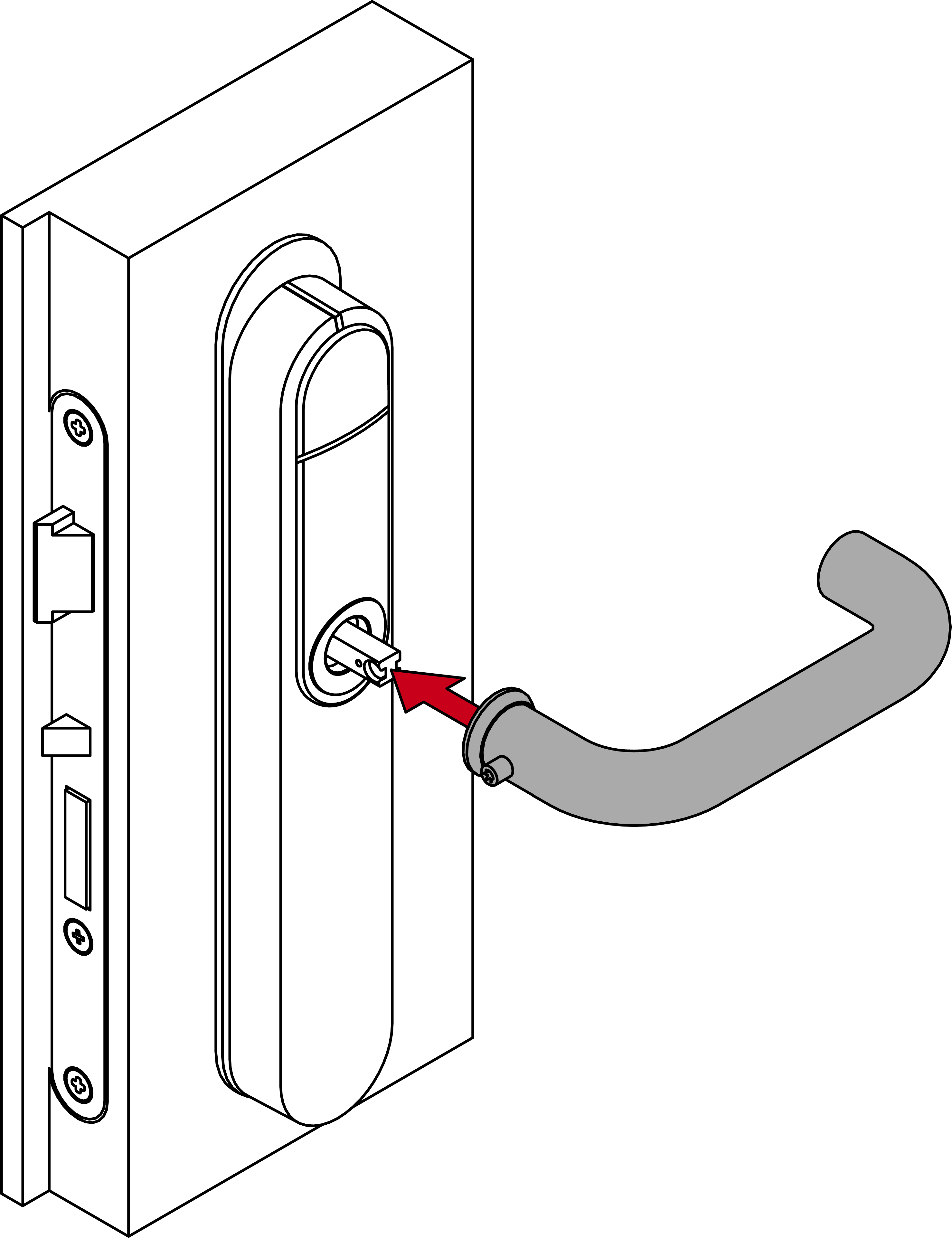 - Insert the spindle into the door with the ring-free side as far as it will go.