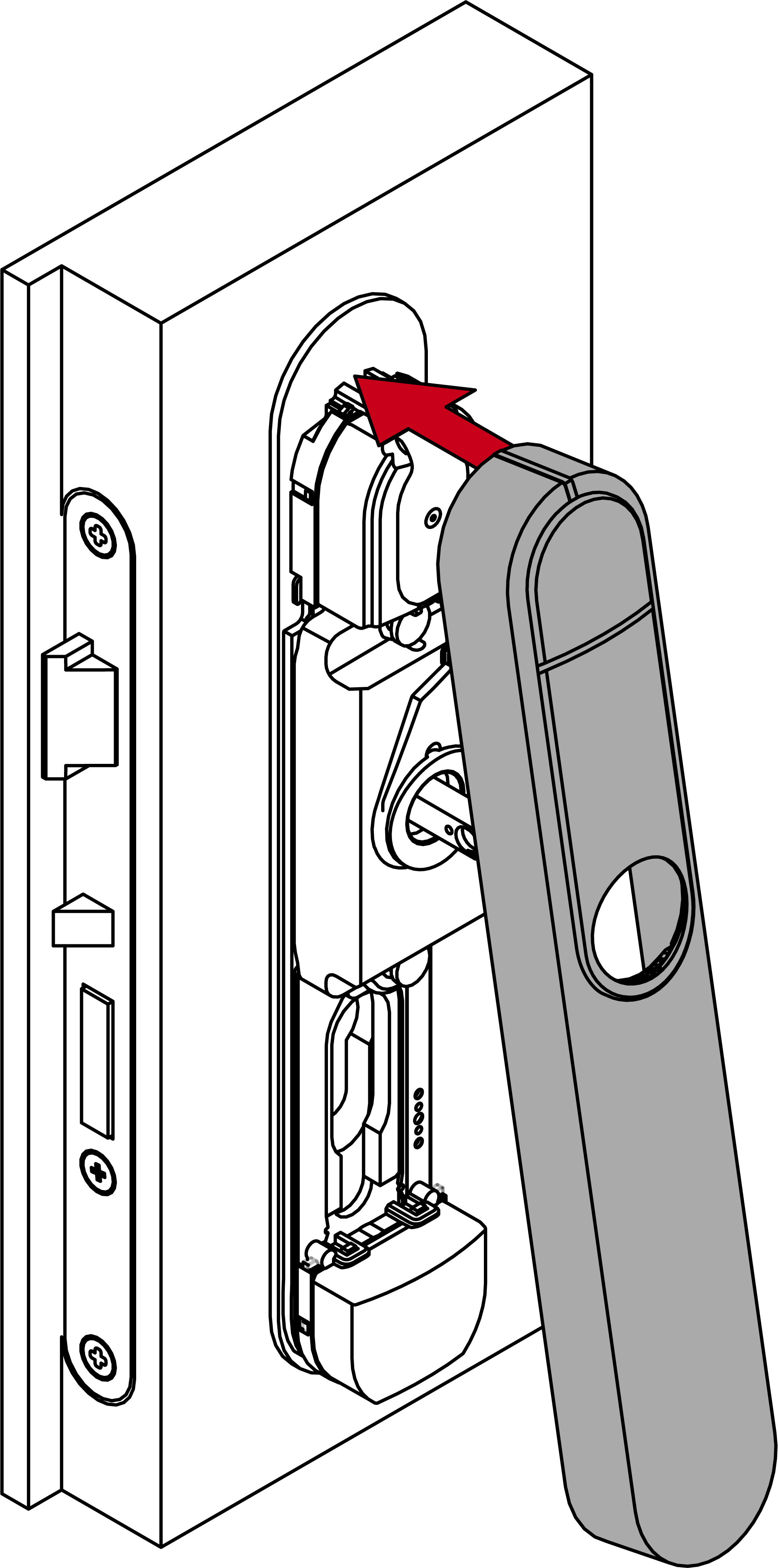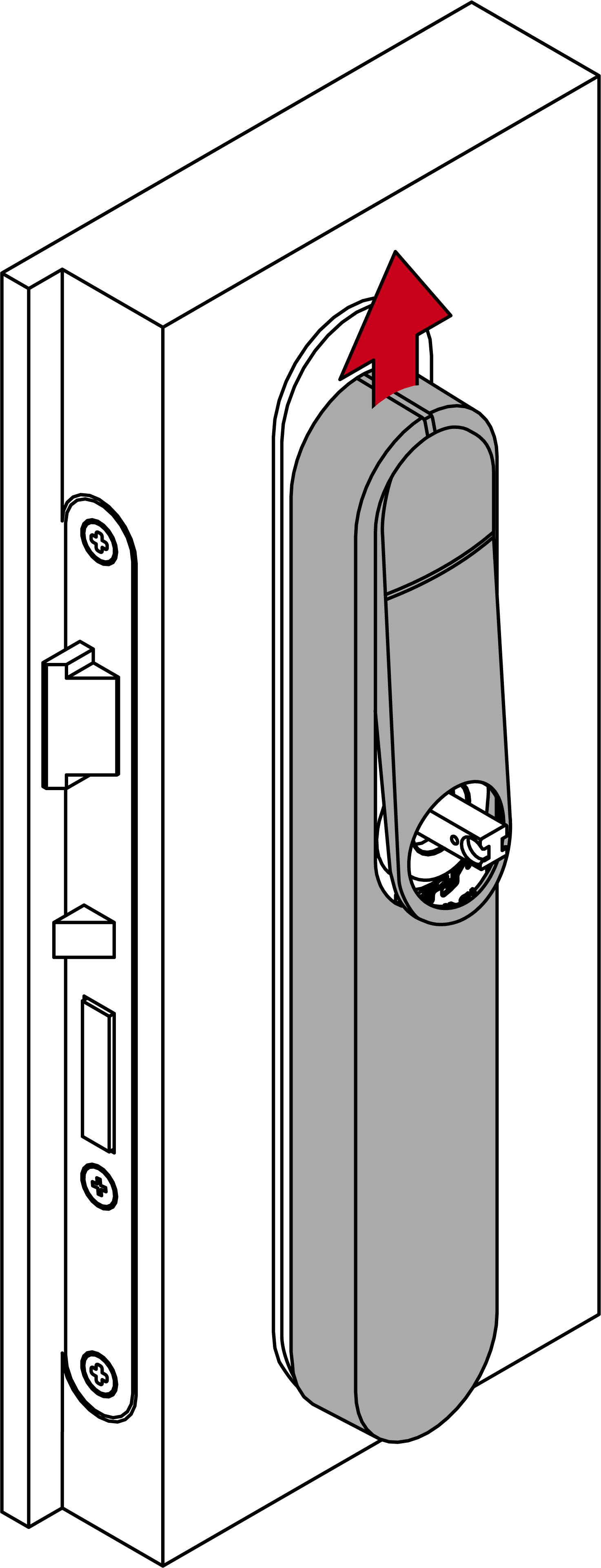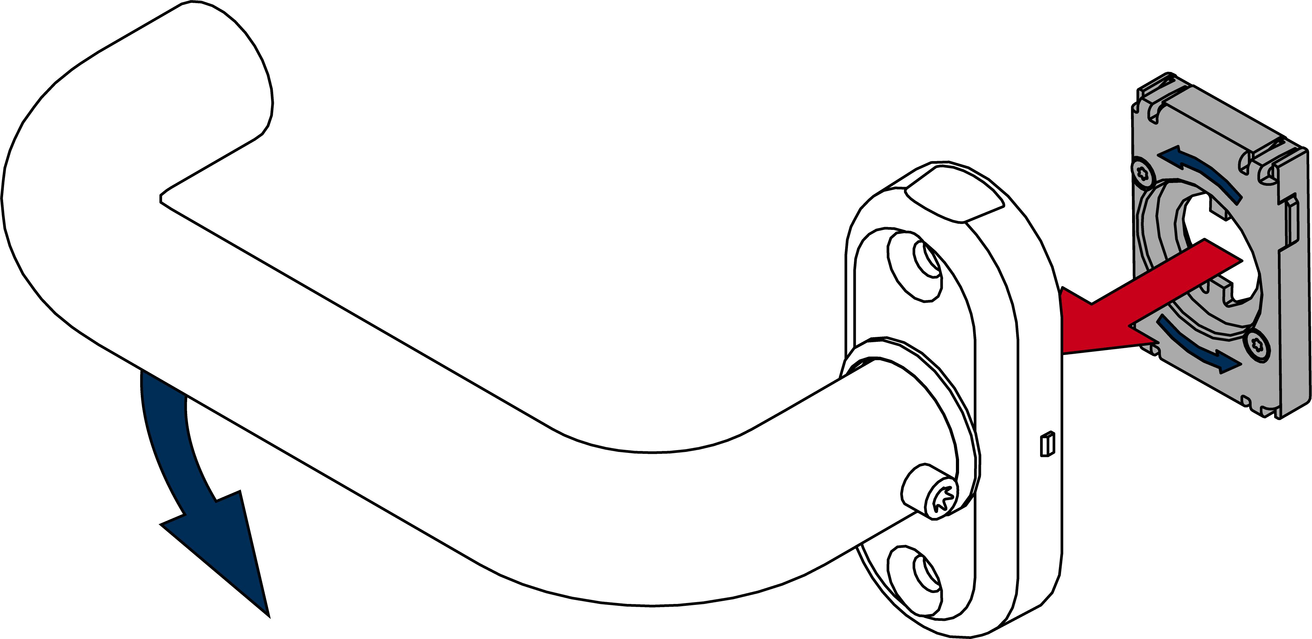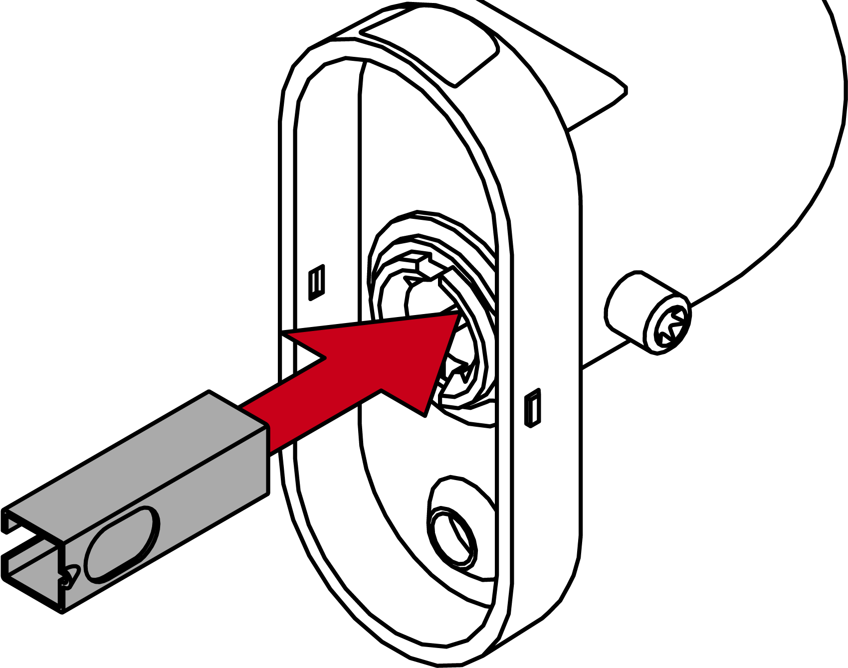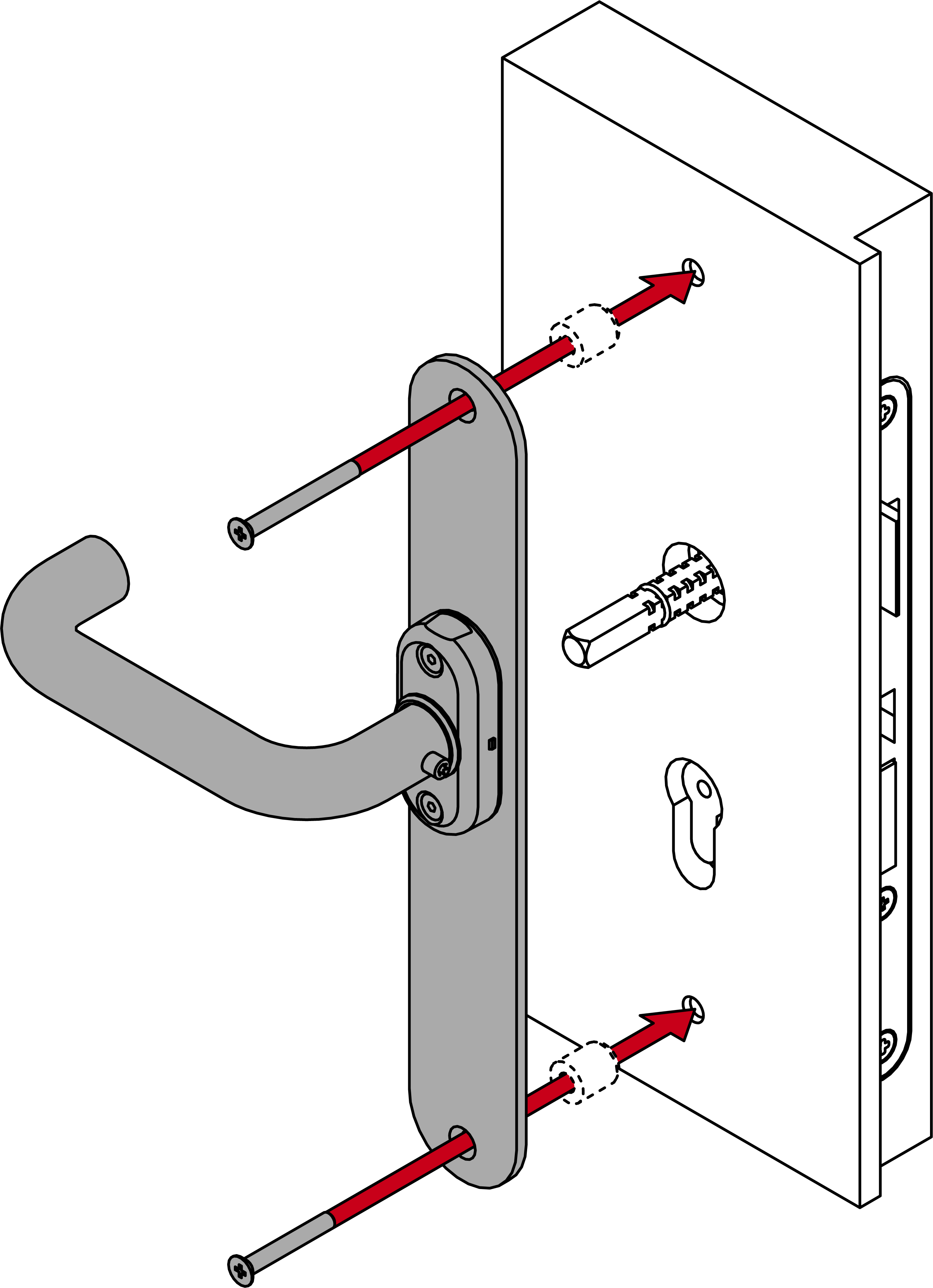 - Screw the inside handle together with the threaded sleeves and 10 mm screws onto the fastening plate (2.5 mm hex key and PH2; torque 1.5 Nm).