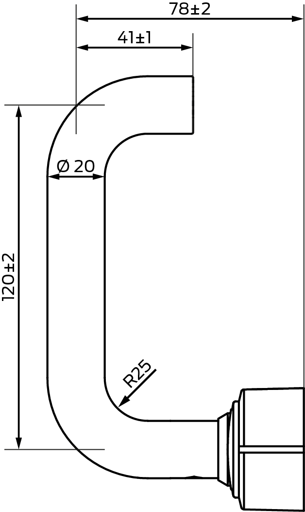 L - U-shaped (rounded and 45° bent)