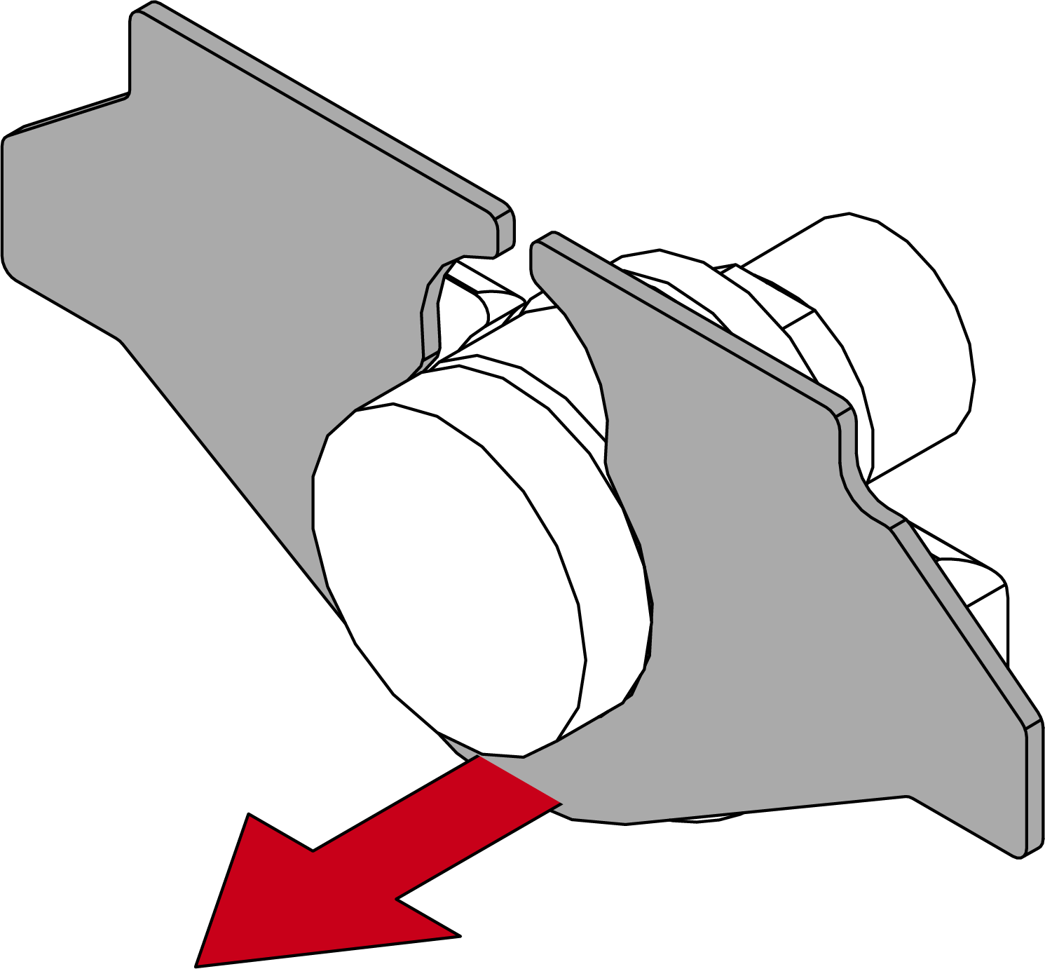 - If necessary, slide the plastic clip forwards to the metal plate.
