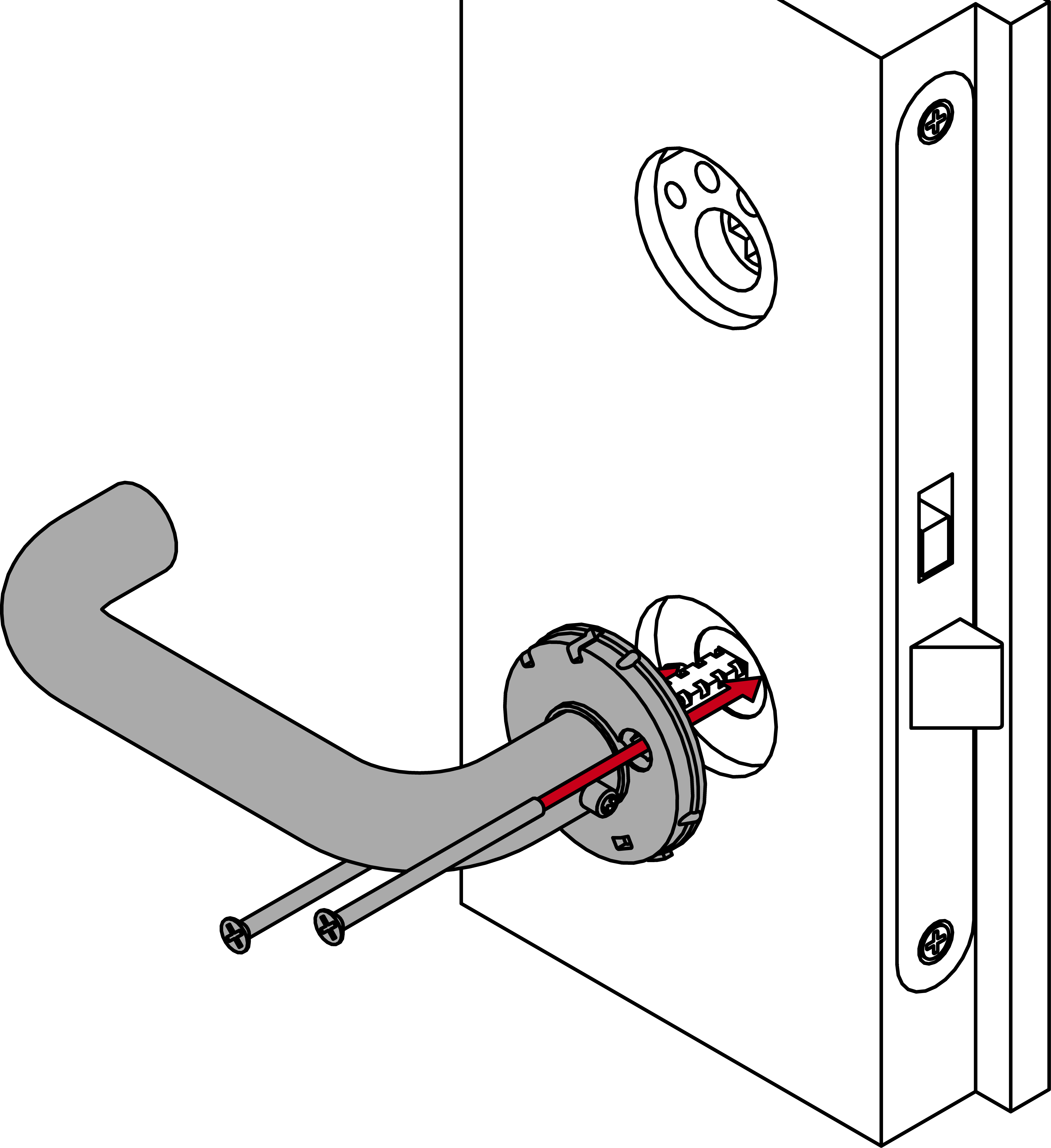 - Place the inside handle unit on the spindle.
