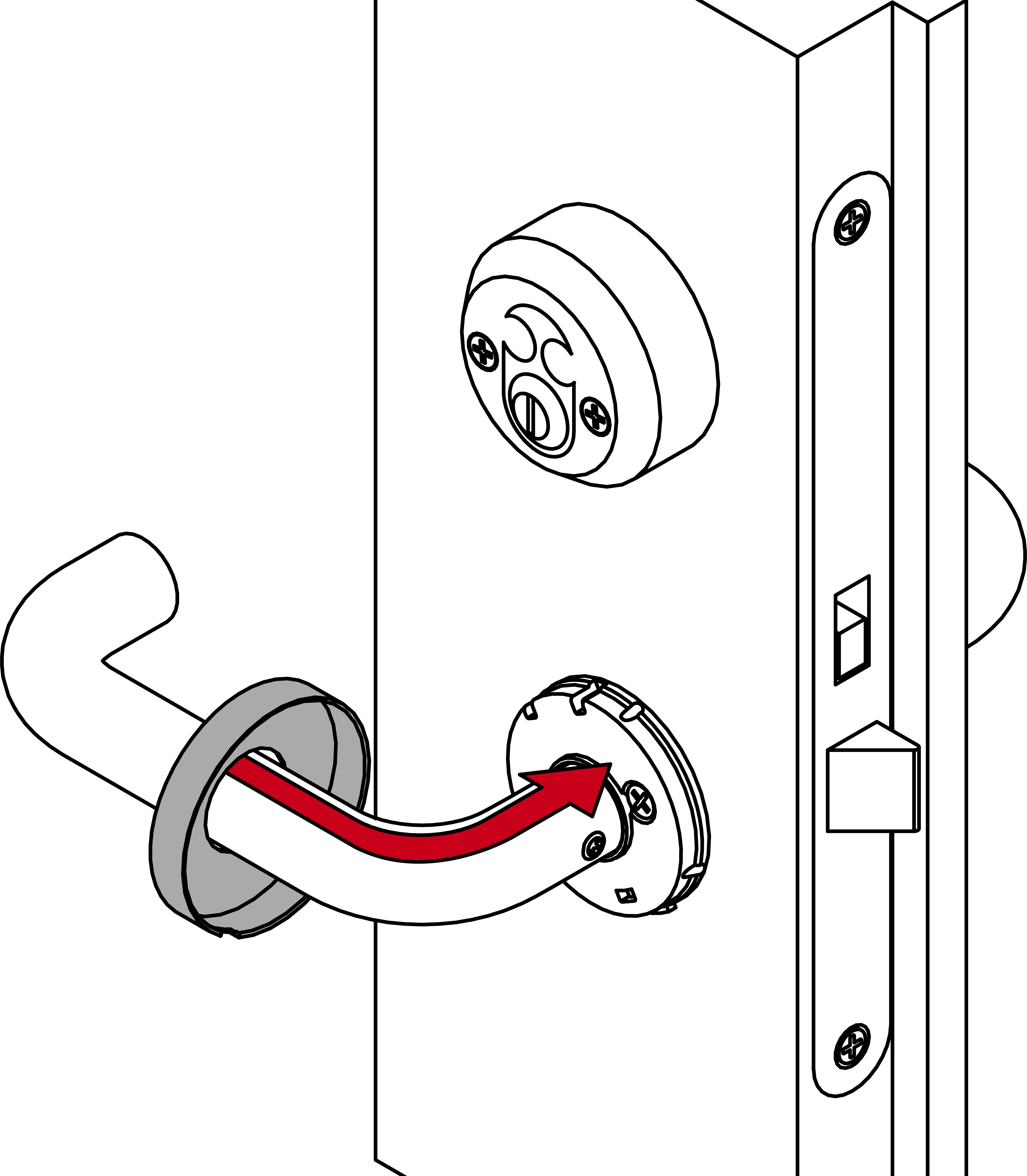 - Determine the required direction of rotation for your inside handle.
