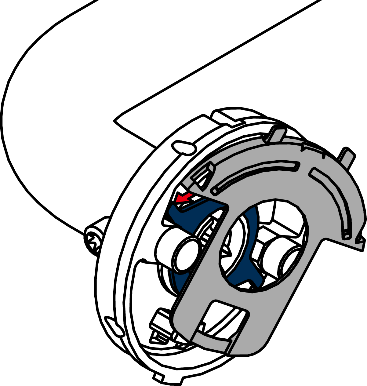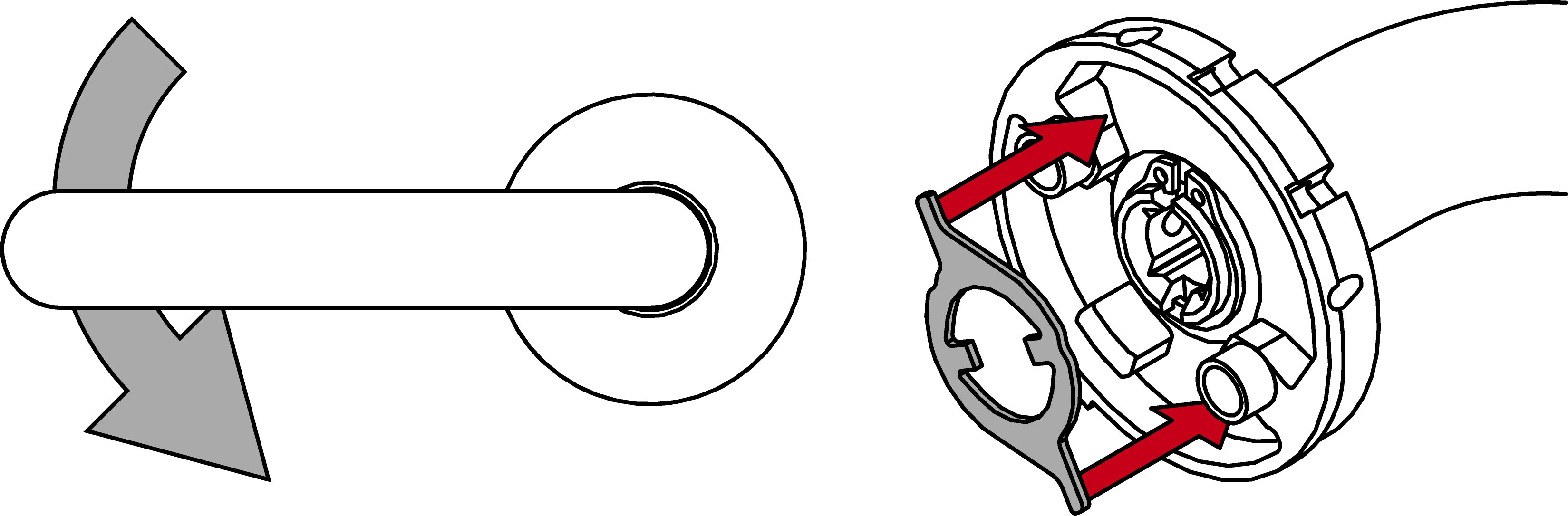 - Attach the end of the spring element into the slot in the escutcheon.