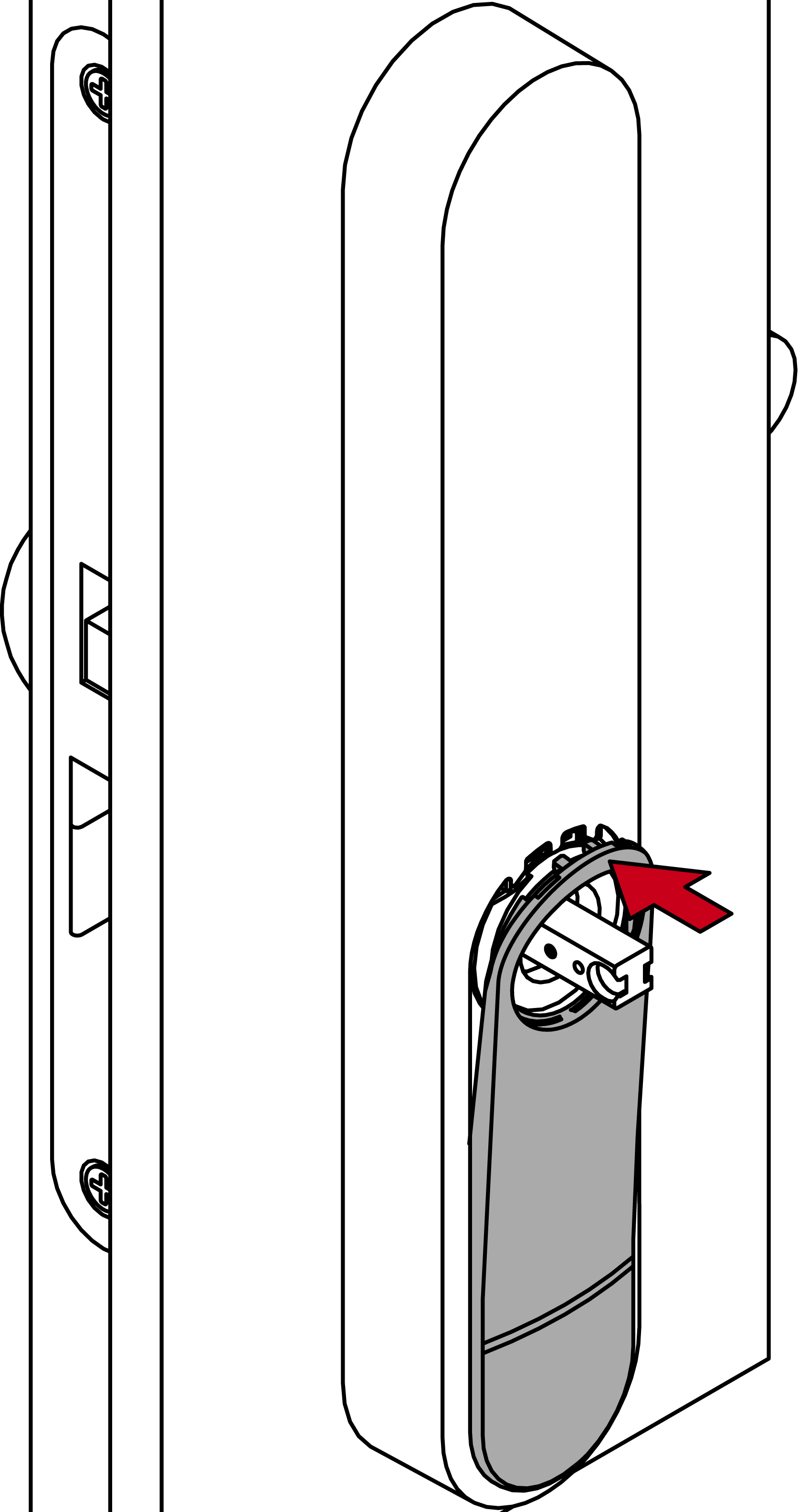 - Attach the end of the spring element into the slot in the escutcheon.
