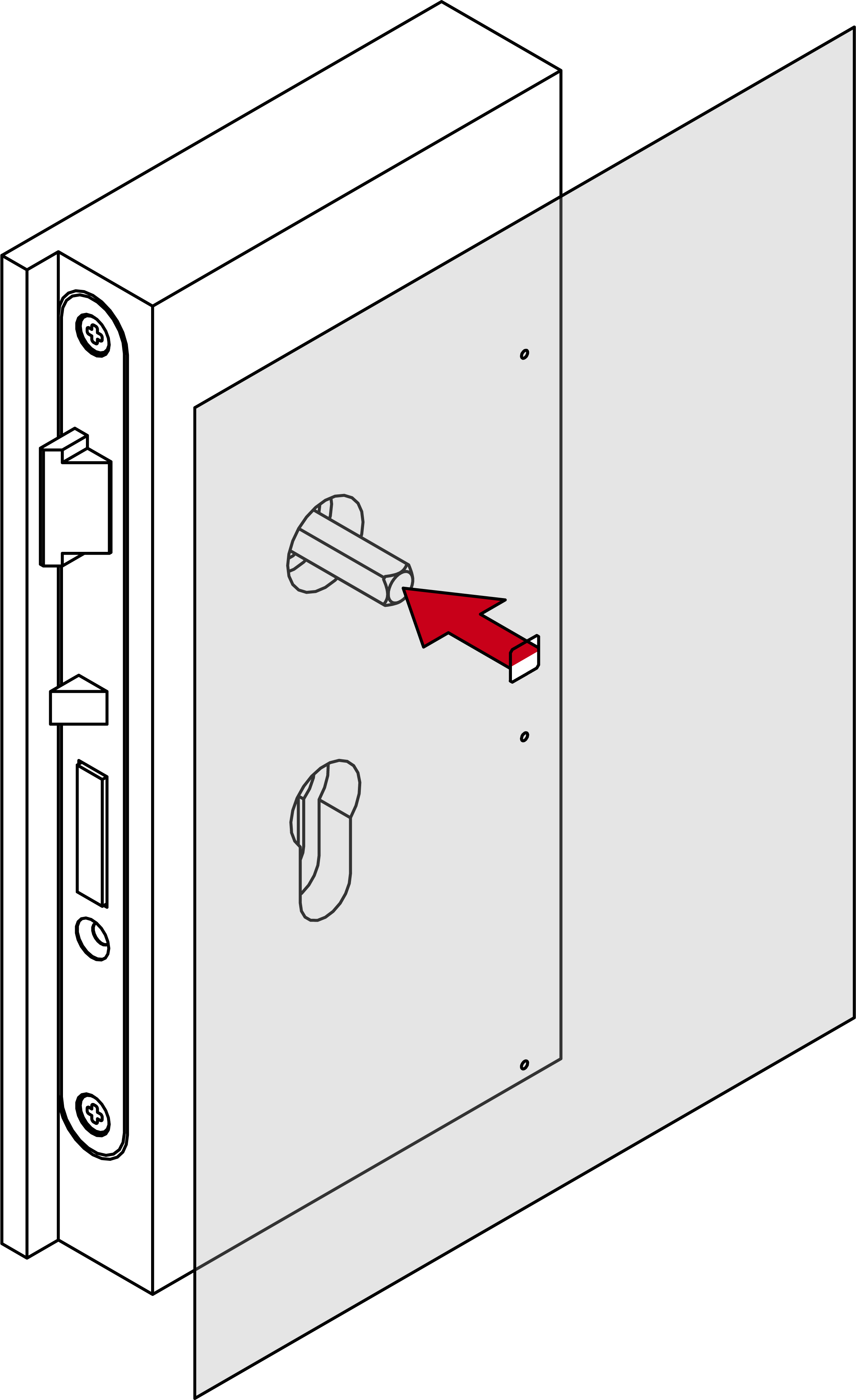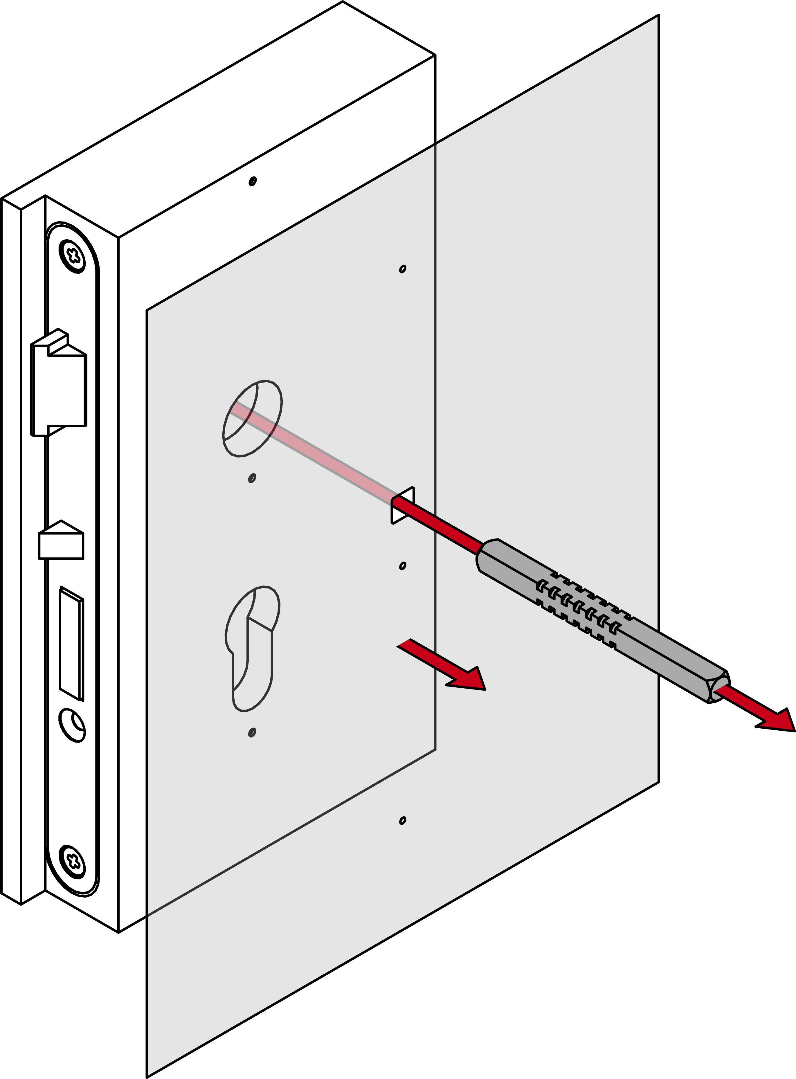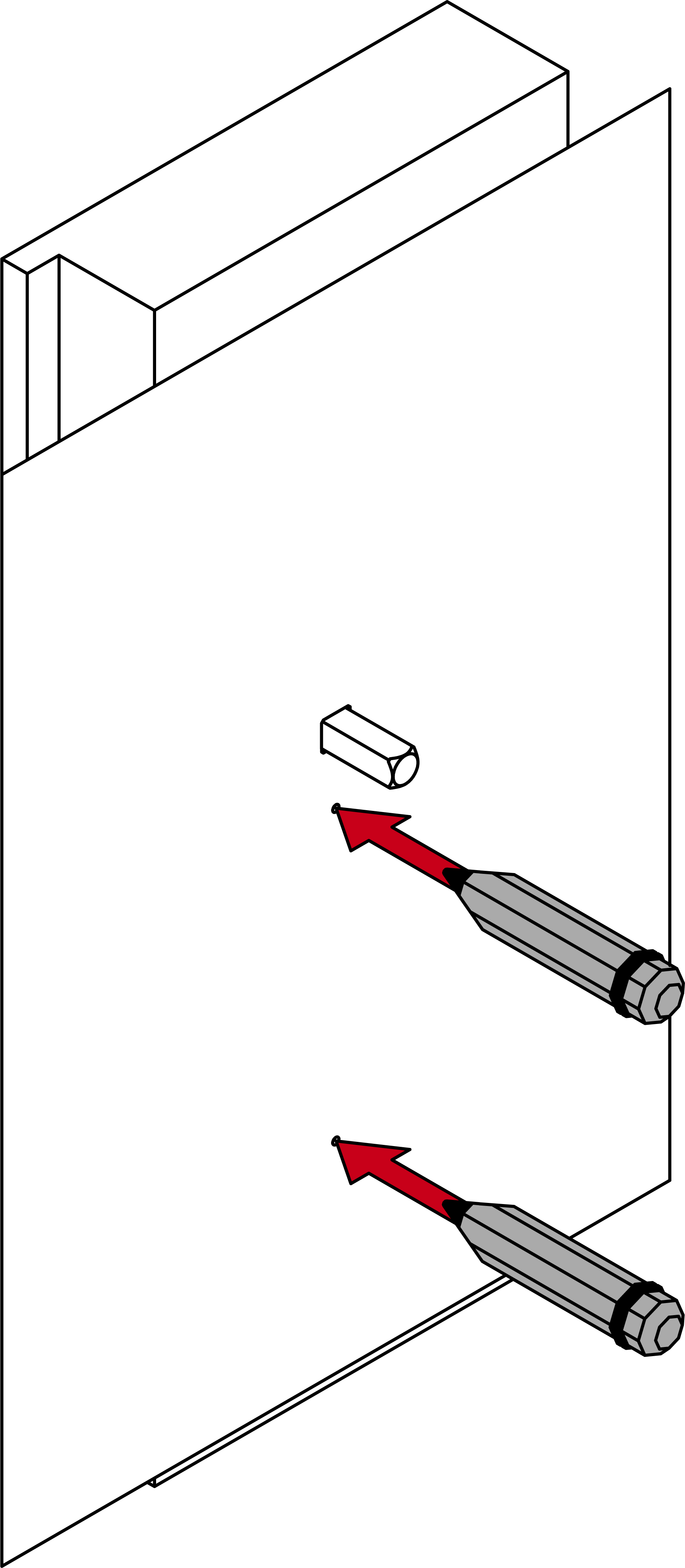 - Mark the points to be drilled on the door (backplate: centre/top; short backplate: centre/bottom).
