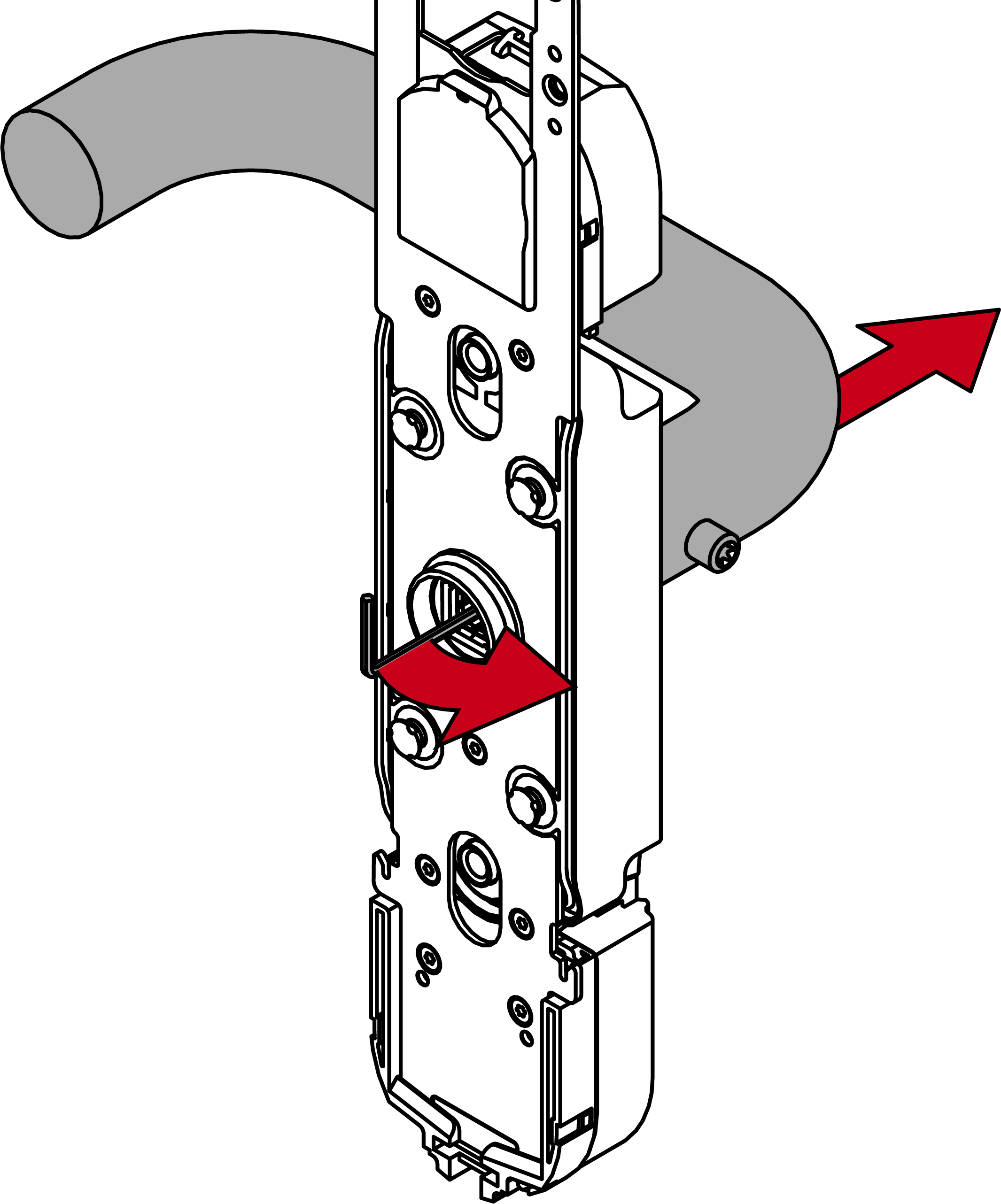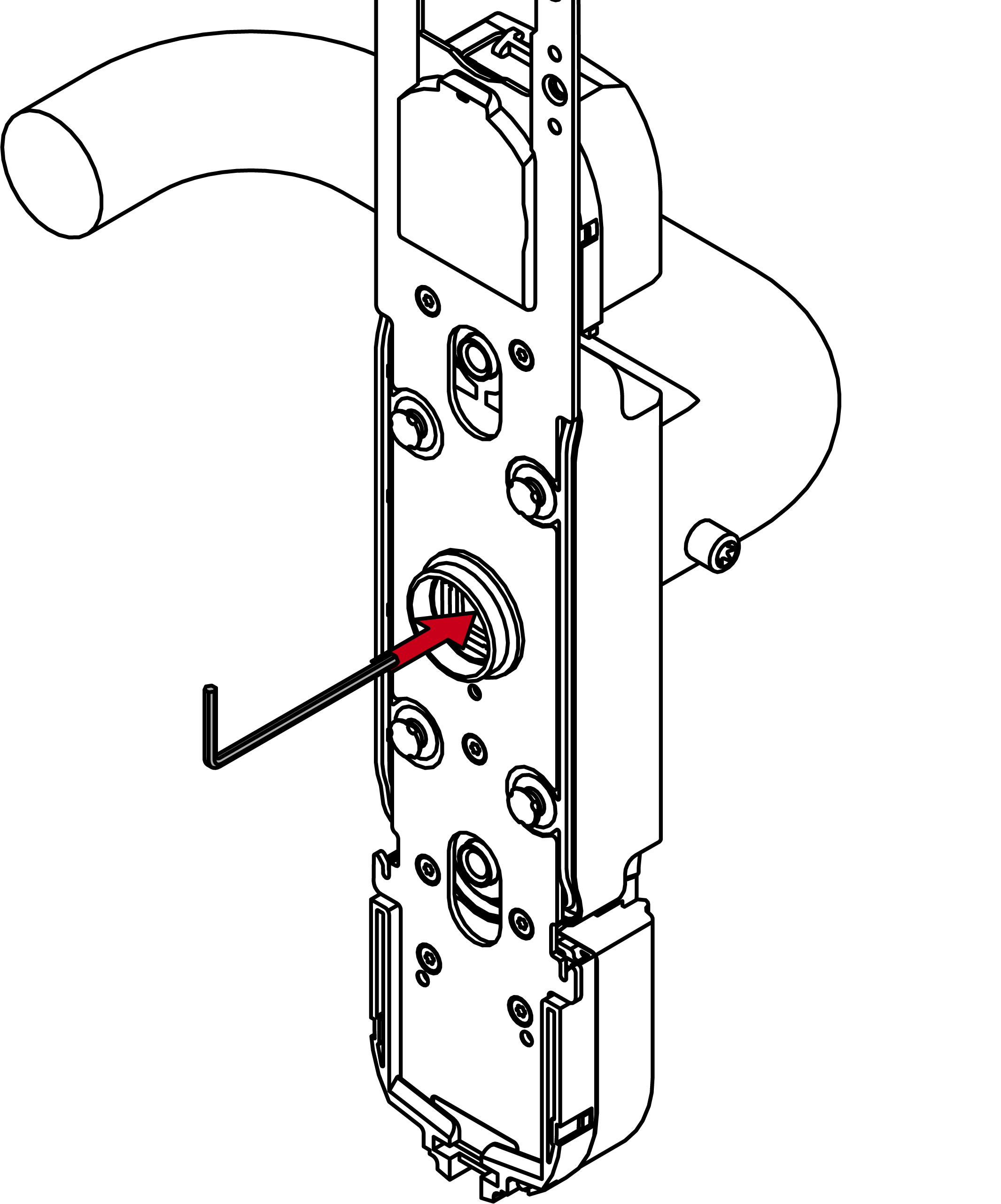 - Bend the hex key to the side where the hole is located while pulling on the outside handle.