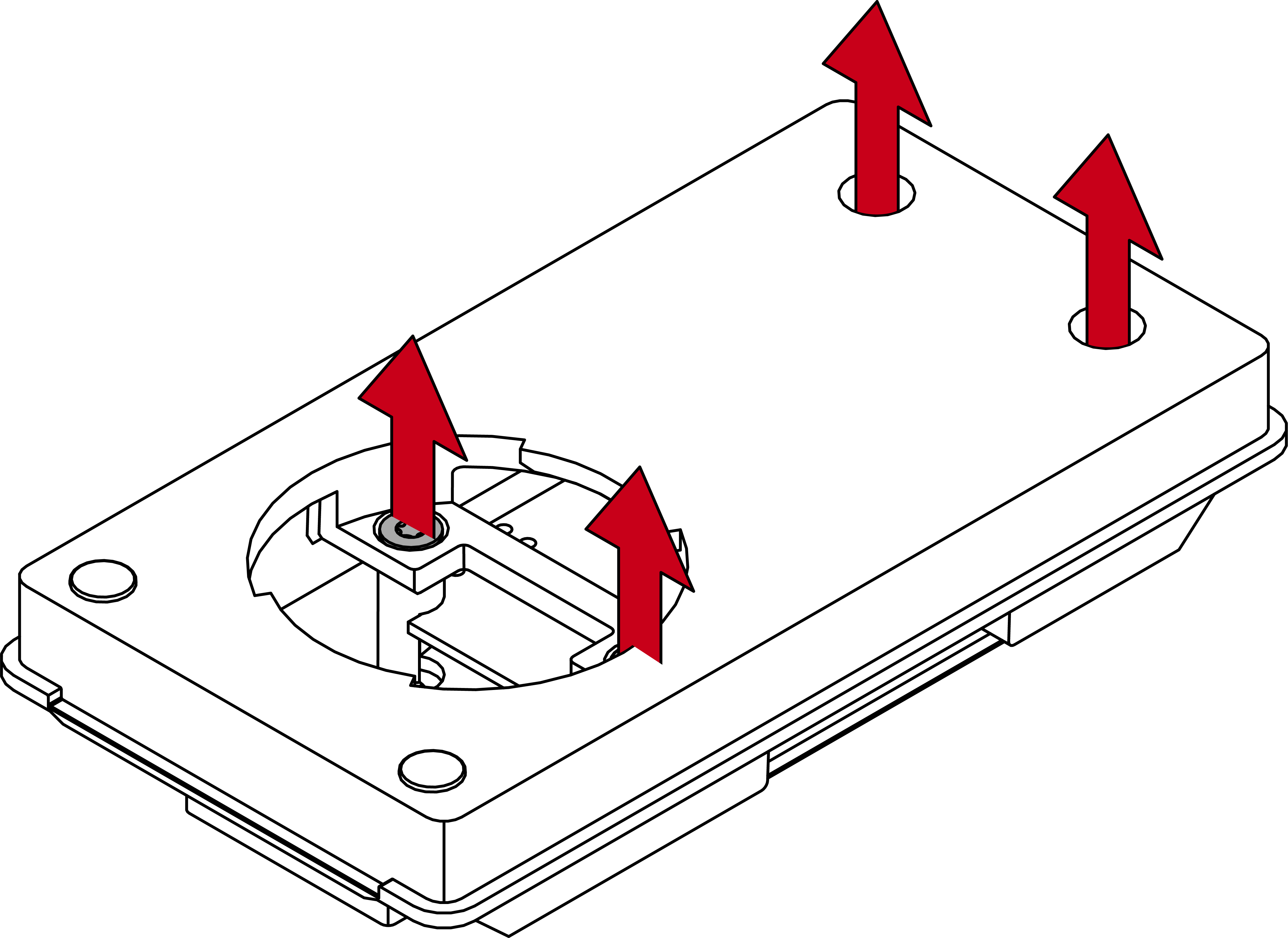- Undo the four screws from the circuit board mount to separate the circuit board mount from the reader base.