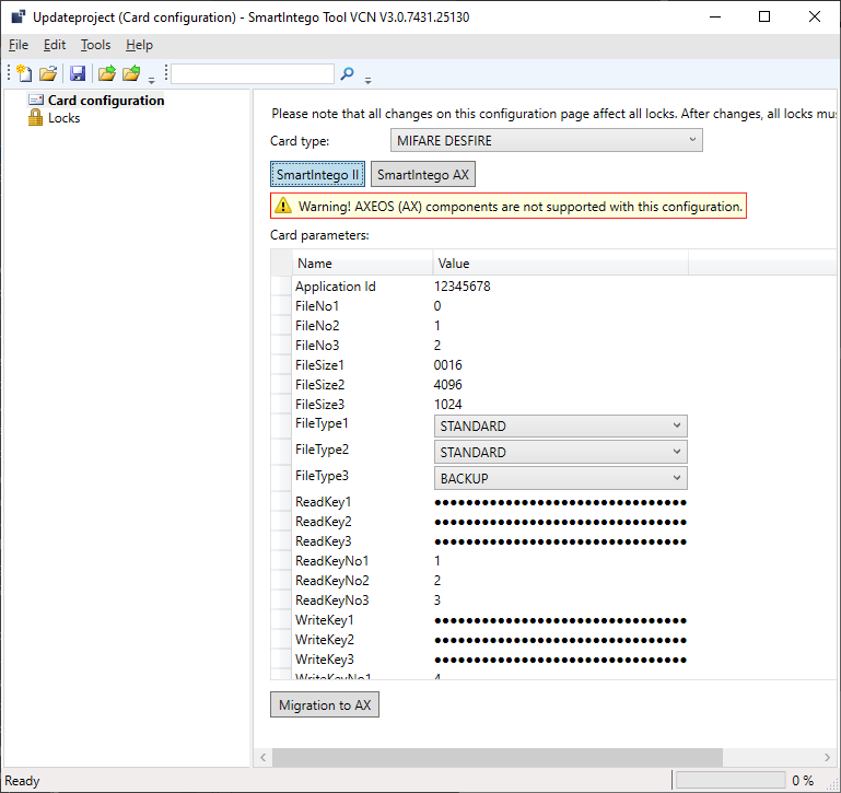 Parallel operation is possible to make a possible changeover in the project "soft" (see Different keys in the basic configuration). In order to use only one card configuration at a time, the project can be migrated to AX card configuration. This is also possible "soft" (with a gradual transition).