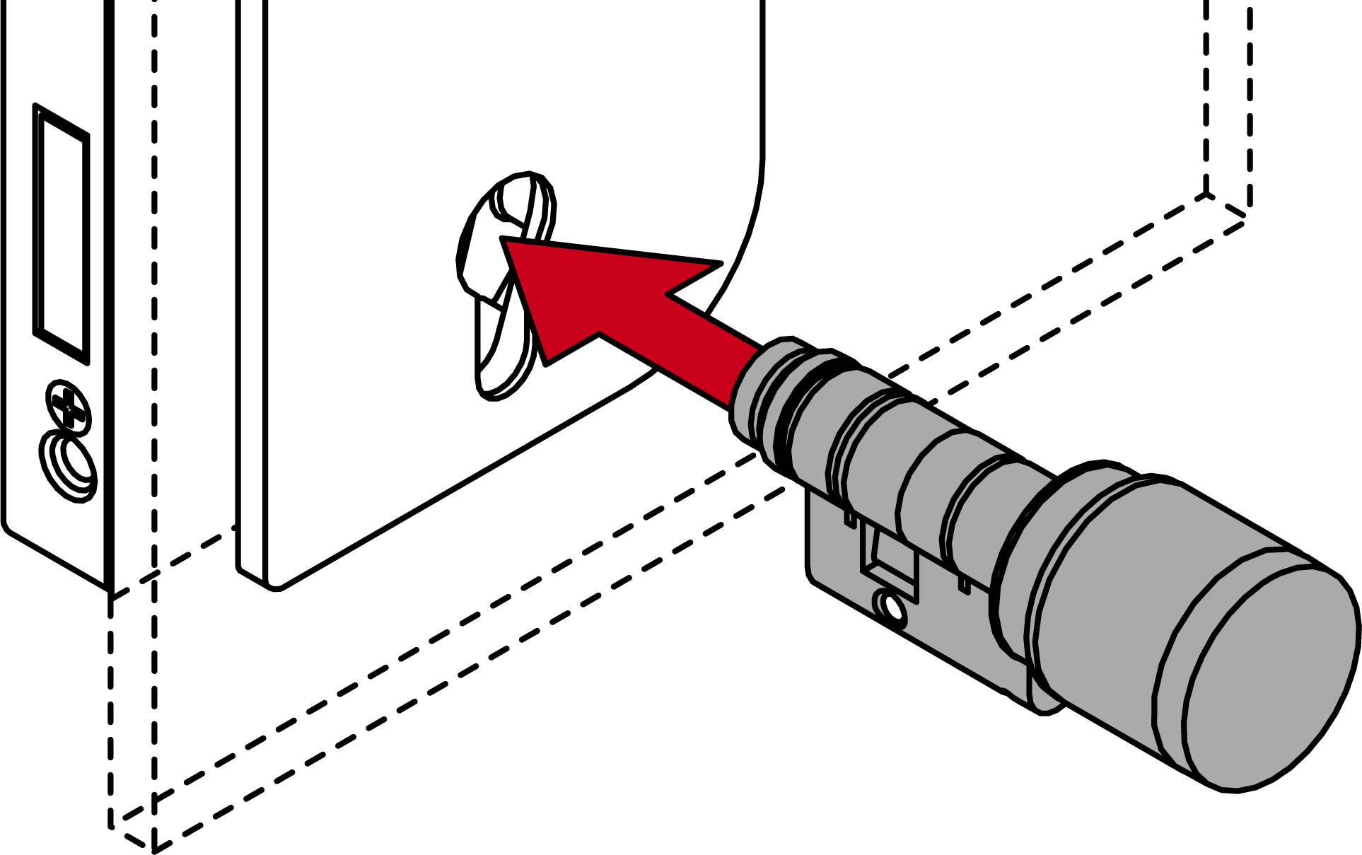 - Secure the SI Digital Glass Door Cylinder AX firmly into place with the fastening screw (PH2).