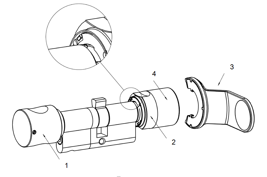 The slave thumb-turn is installed with the installation or battery replacement key. The exact procedure is described in the short instructions supplied with the locking cylinder.