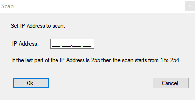 - Geben Sie eine bekannte IP-Adresse eines Geräts im (WaveNet)-Netzwerk ein (Andere oder neue Geräte werden ebenfalls gefunden. Wenn Sie keine IP-Adresse kennen, dann verwenden Sie folgende IP-Adresse: 192.168.100.255 - je nach Subnetz möglicherweise abweichend).
