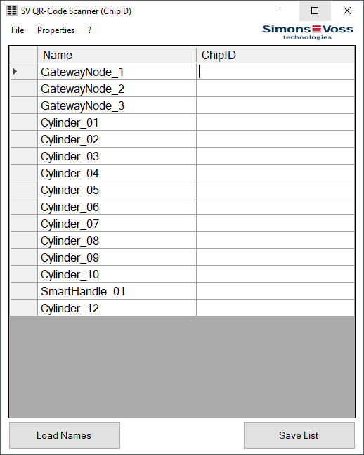 - Öffnen Sie den SimonsVoss QR-Code-Scanner (Chip-ID).