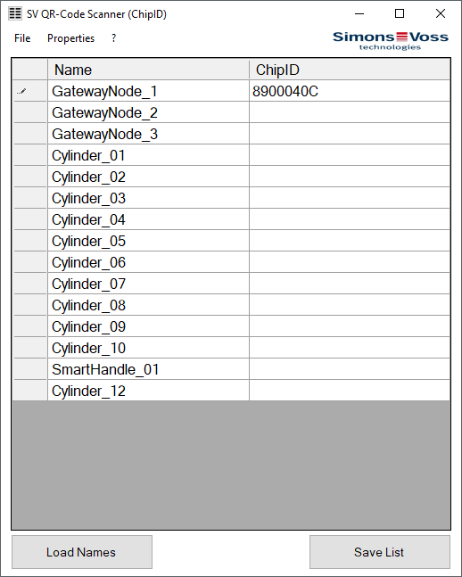 - Türnamensliste mit den Chip-IDs ist gespeichert (wird später vom SmartIntego-Manager benötigt, siehe Türnamensliste in SmartIntego-Manager importieren).