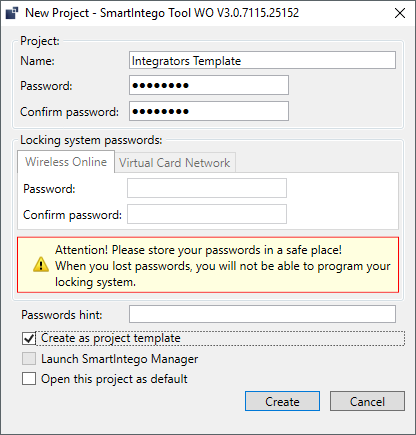 - Vergeben Sie ein Projektpasswort für das Template.